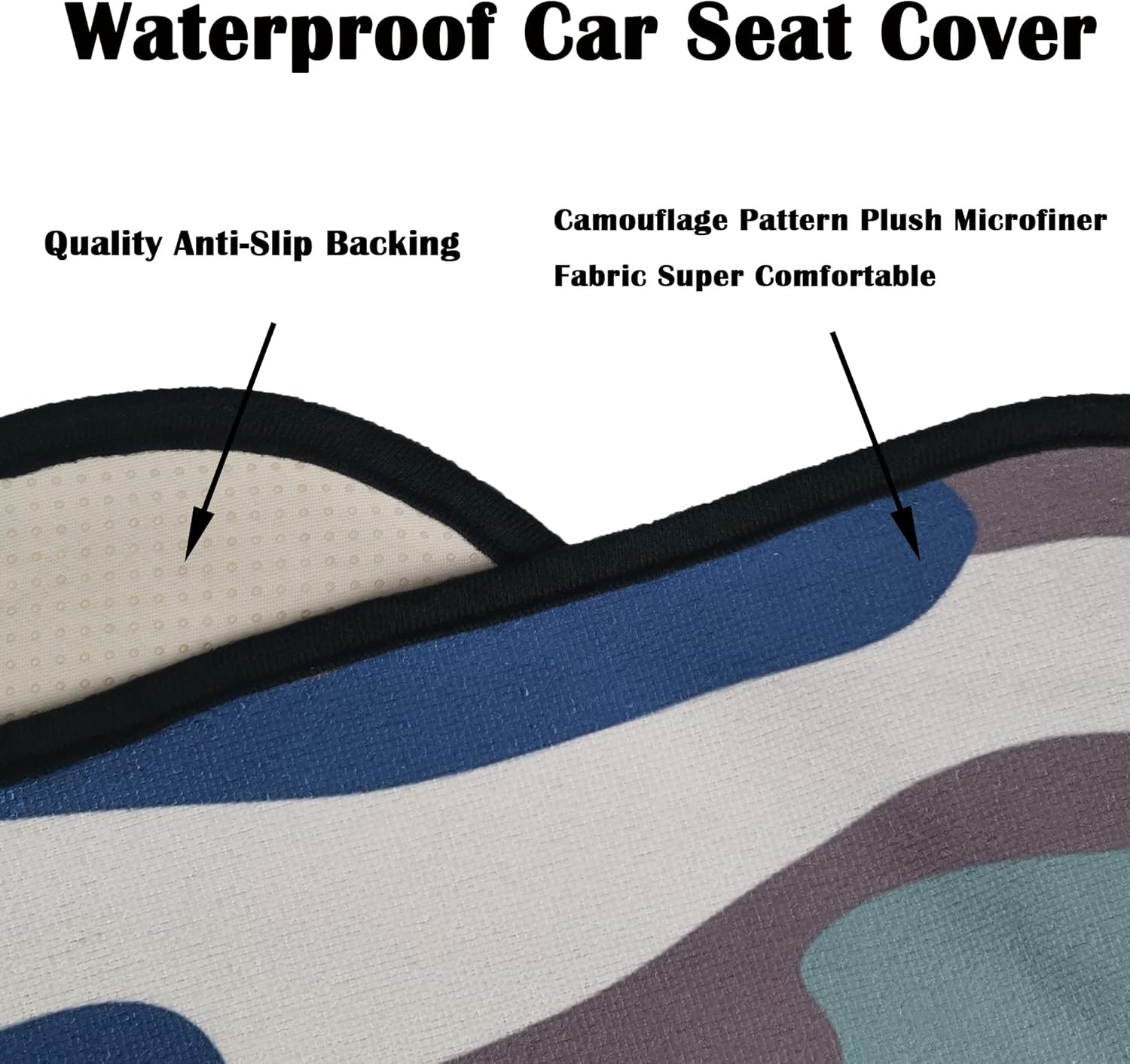 - Made From 3 Layer Material: (Front) Camouflage pattern printed on towel cloth, It will keep your car seats fresh and clean. (Middle) Waterproof fabric that is designed to guard your seat against moisture and sweat. (Back) This seat cover are designed with a non-slip backing fabric that's super comfortable and won't slip off your seat.