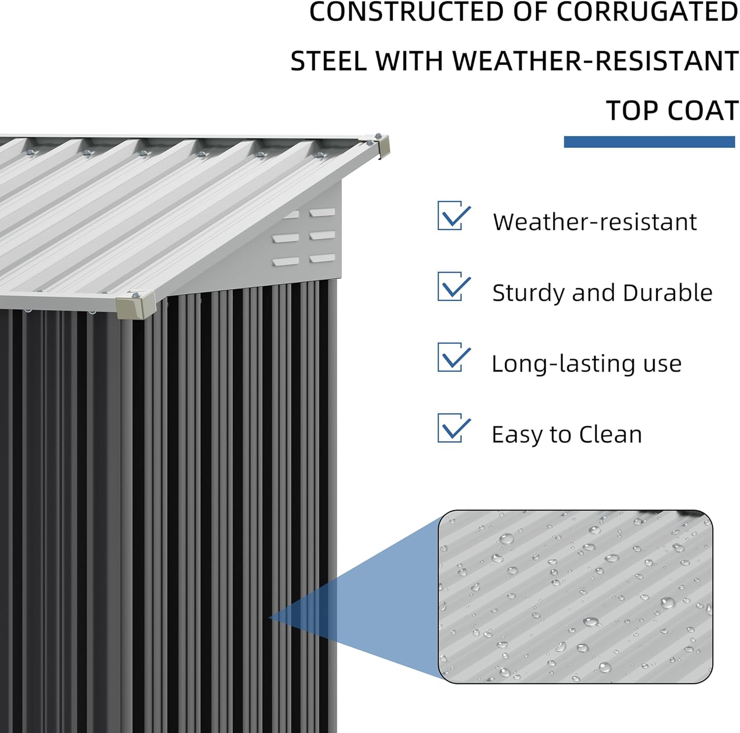 JYQAQA 5x3 FT Outdoor Garden Storage Shed, Waterproof Metal Garden Sheds with Window and Lockable Double Door, Weather Resistant Steel Tool Storage House Shed for Patio, Lawn Dark Gray