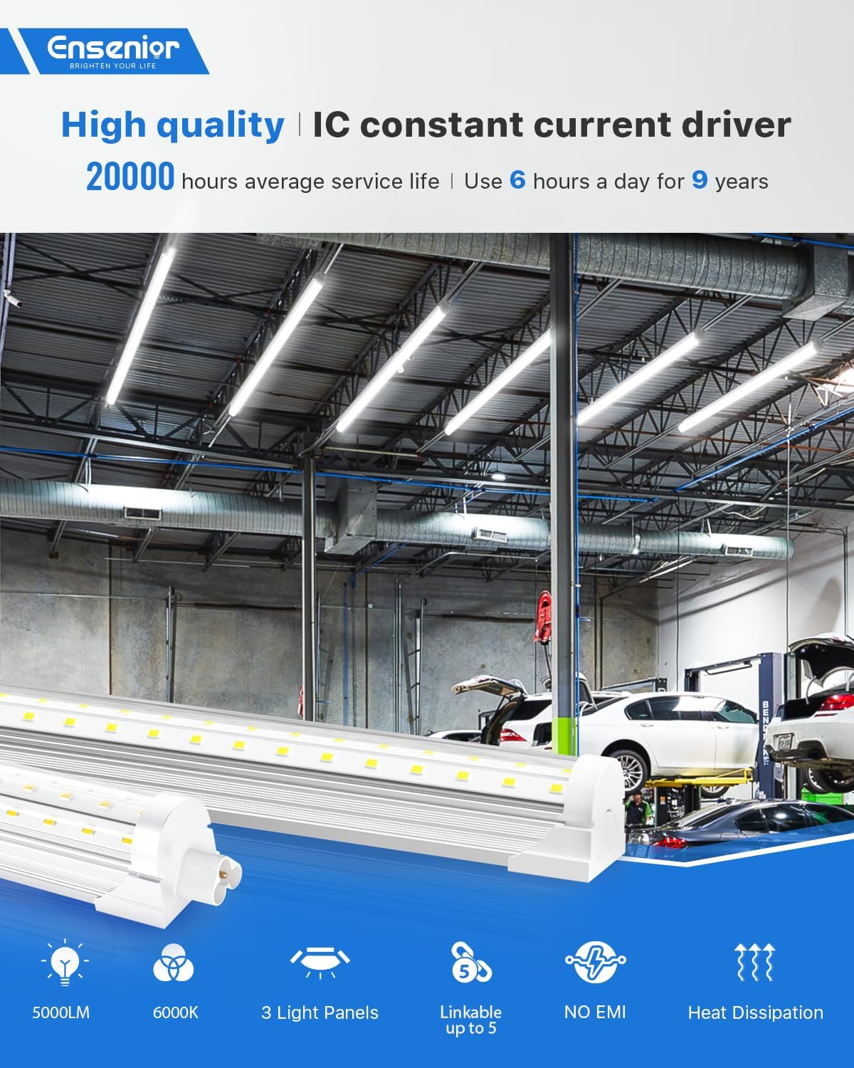 Ensenior 4 Pack 4 FT Led Shop Lights, 6000K Clear White, 5000LM Super Bright, 36W Equivalency 468W, Commercial Bay Lighting, U-Shaped Linkable Shop Lights Plug in for Garage, Workshop, FCC Certified