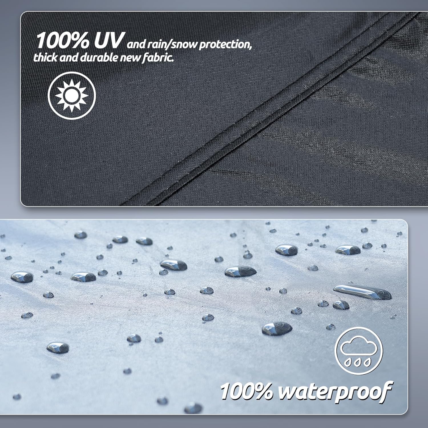 - 【Wind-Resistant Design】The car cover waterproof all weather has been specially designed to resist strong winds. ① Equipped with two bungee cords, which only take a few seconds to tie to the tires on both sides, it securely covers the front and rear of the car. ② There are specially designed windproof straps at the bottom to pass through the car's middle to ensure that the cover is not blown away. ③ The adjustable elastic hem makes it easy to adjust the size and fix the car body.