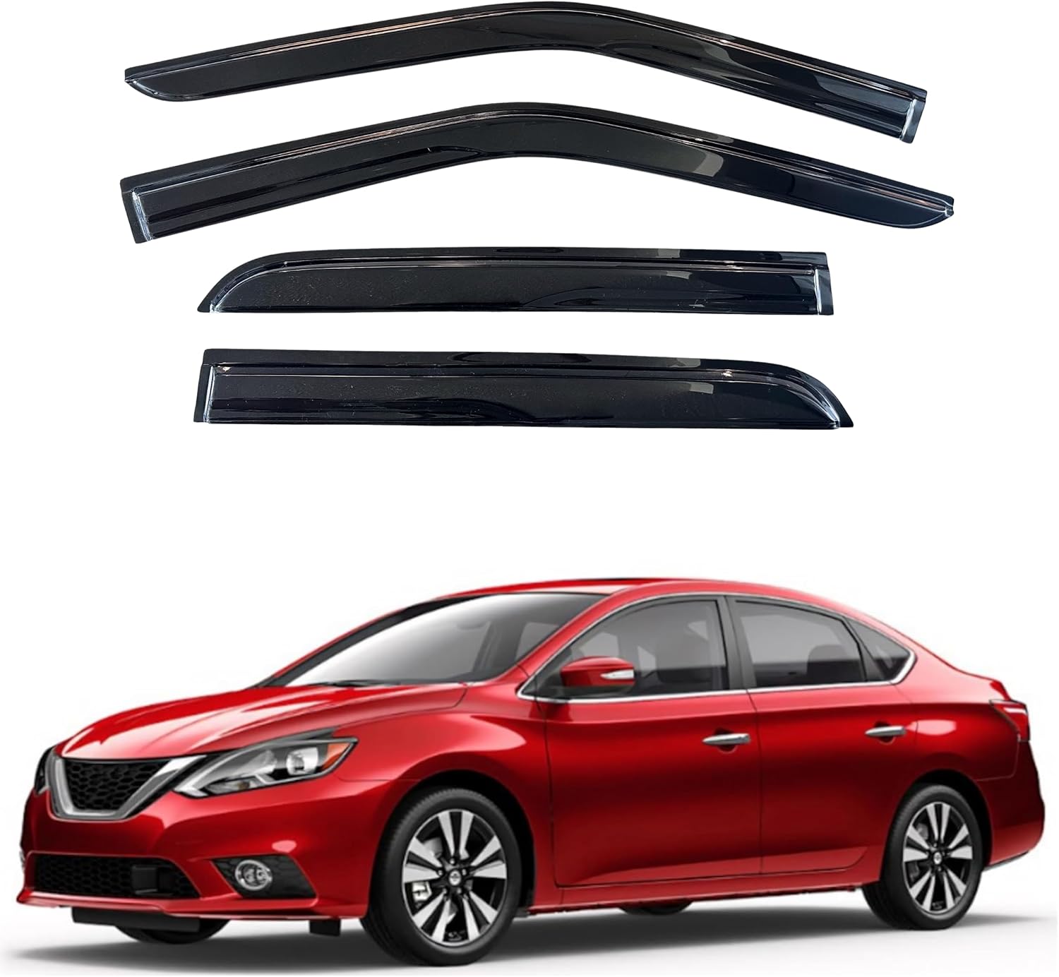 - 【Perfect Fit】KPY window visors rain guards vent deflectors compatible with Nissan Sentra 2013 2014 2015 2016 2017 2018 2019 (Mugen Style)