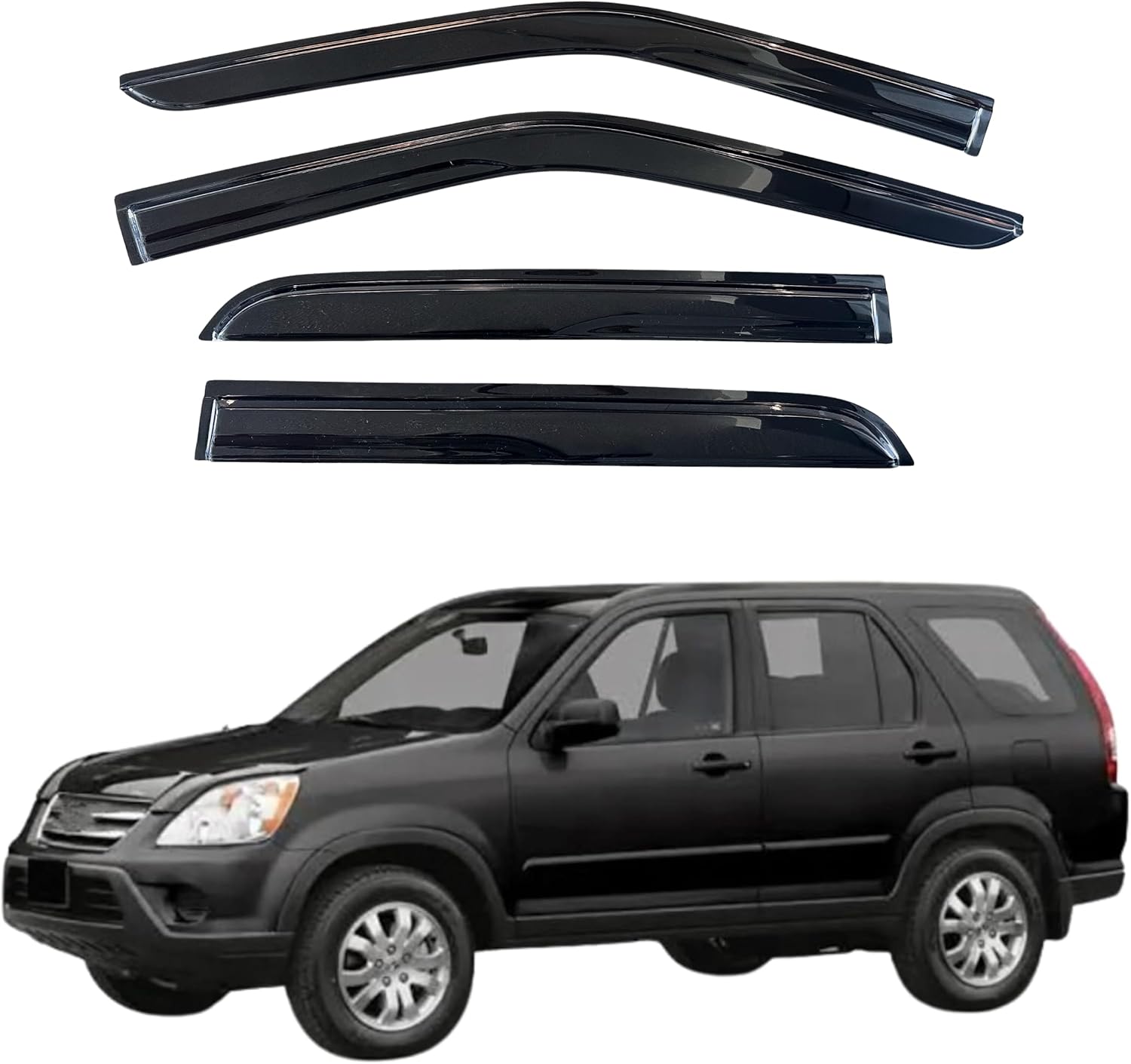 - 【Perfect Fit】KPY window visors rain guards vent deflectors compatible with Honda CR-V 2002 2003 2004 2005 2006 (CRV) (Mugen Style)
