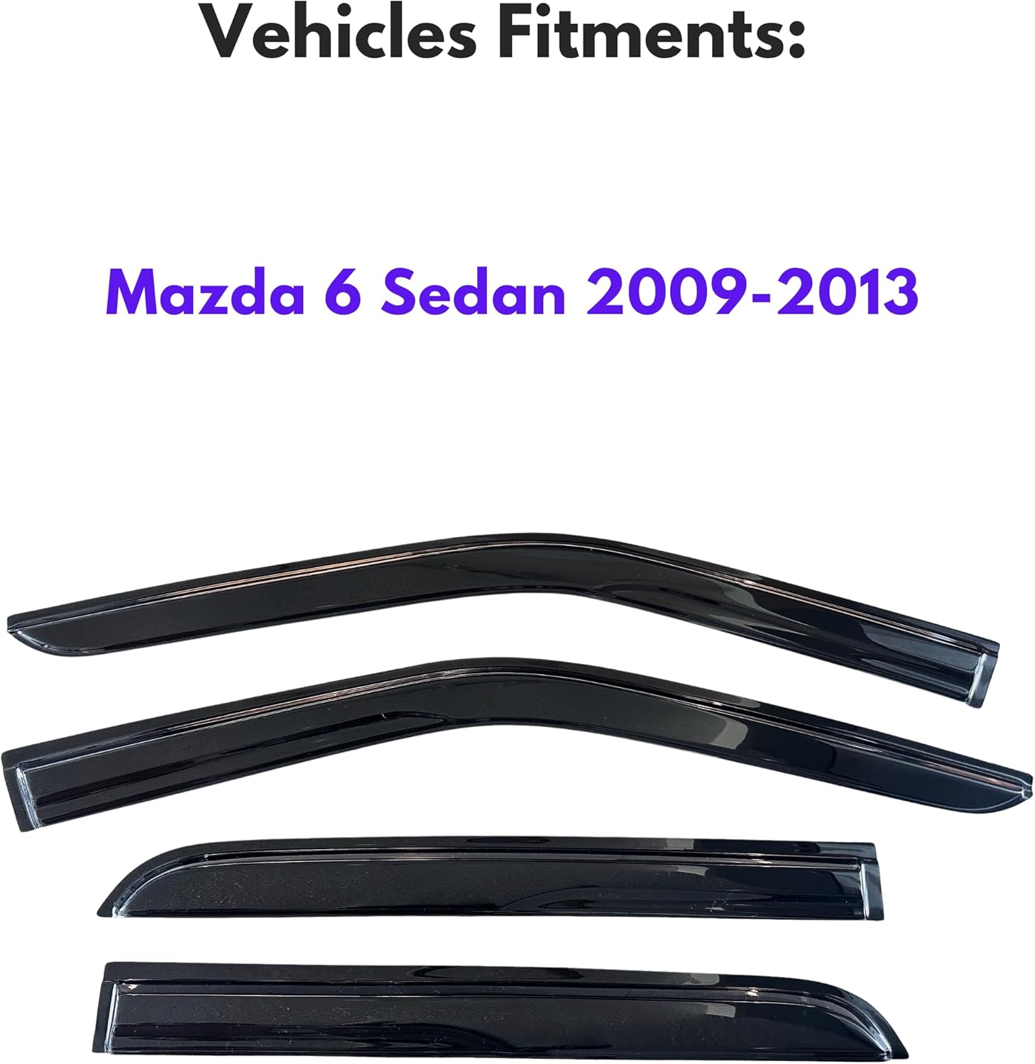 - 【Perfect Fit】KPY window visors rain guards vent deflectors compatible with Mazda 6 Sedan 2004 2005 2006 2007 2008 2009 2010 2011 2012 2013 (Mugen Style)