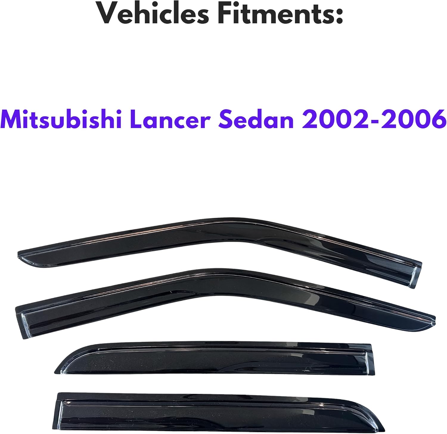 - 【Perfect Fit】KPY window visors rain guards vent deflectors compatible with Mitsubishi Lancer Sedan 2002 2003 2004 2005 2006 (Mugen Style)
