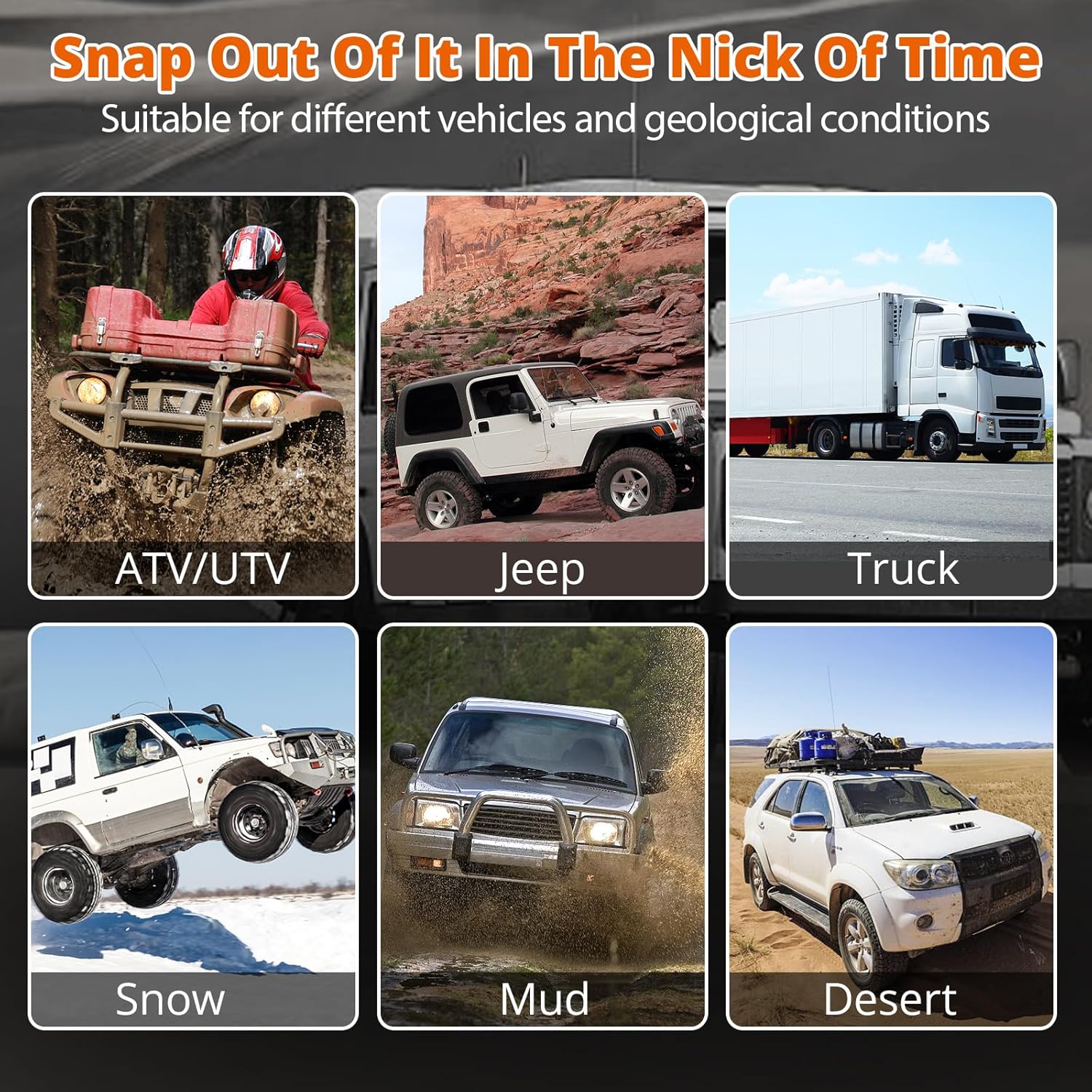 - Enhanced Heavy-Duty Towing Gear: 1 INCH UPGRADED TO 1.26 INCH, our ultimate recovery rope turn to sturdier and stronger. Lab tested and certified up to 55000LBS breaking strength, outperforms wire winch ropes by 45%.Stretching and storing four times the energy compared to a tow strap, efficiently recovers vehicles of all sizes including Jeeps, off-roader, SUVs, boats, ATVs, trucks, trailer recovery/towing/snatch straps, tractors, pickups, farming, tree savers, and sport-utility vehicles,etc