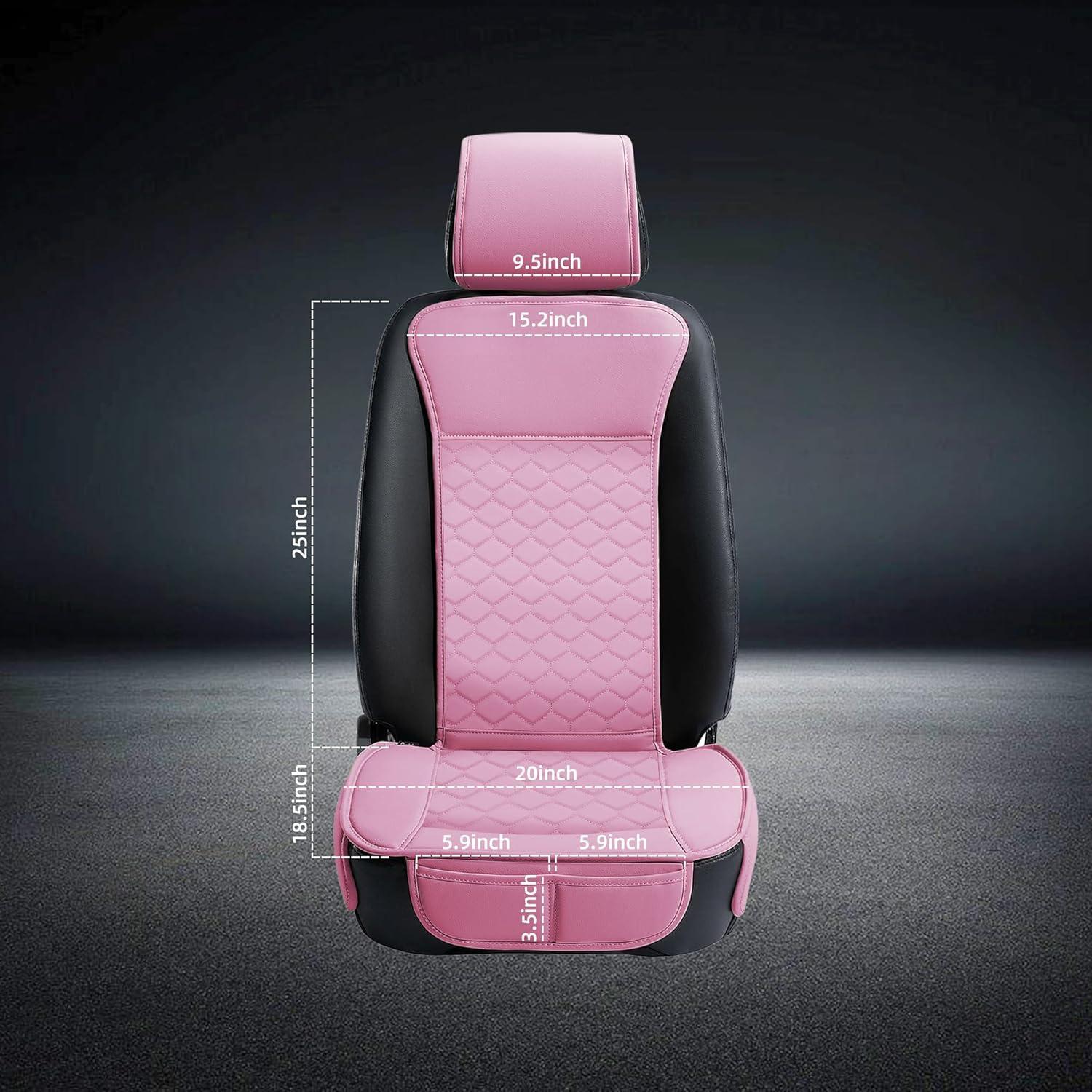 Elantrip 2 PCS Front Car Seat Covers Pink Leather Auto for Women Airbag Compatible Diamond Pattern PU Seat Cover Universal Fitness