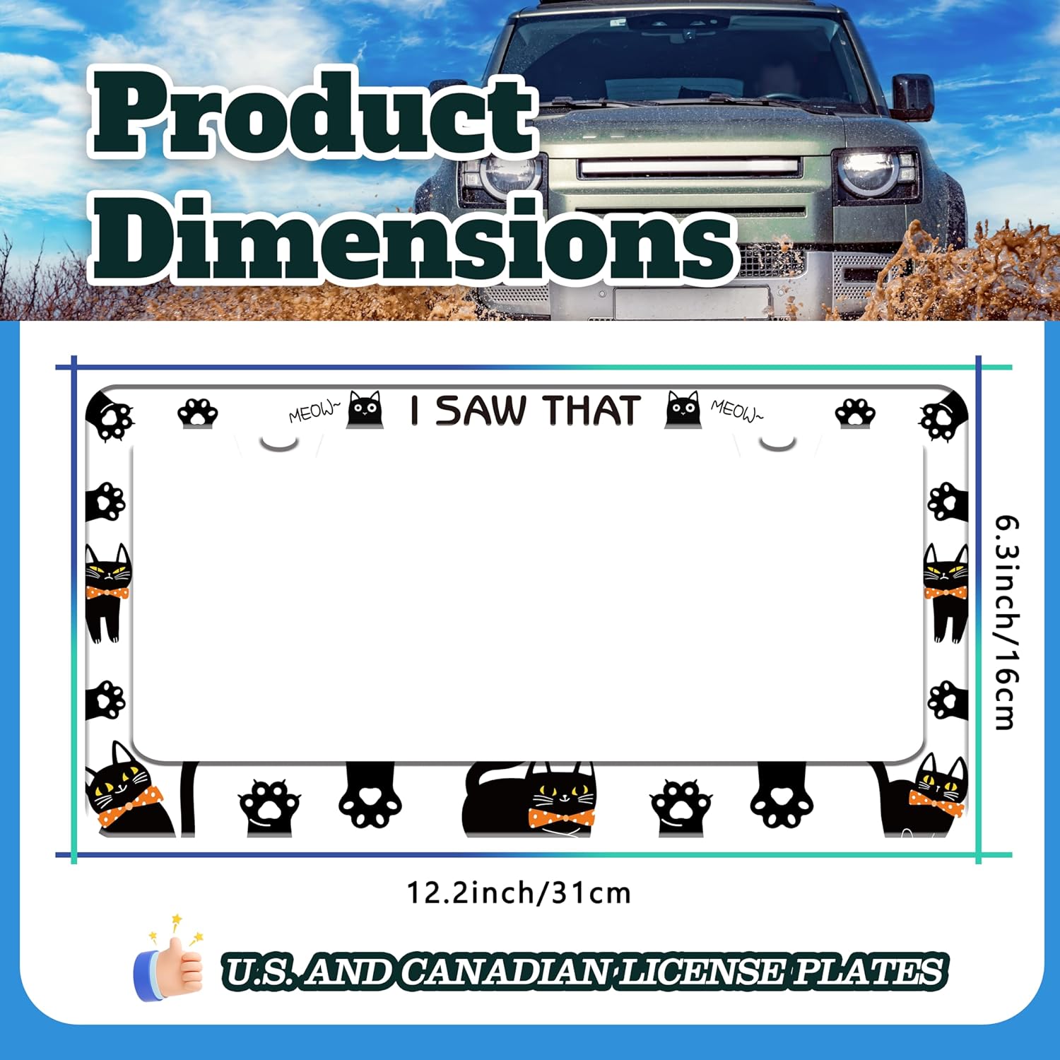 - 6.3 X 12.2 INCHES: Suitable for most standard size U.S. and Canadian license plates, can be applied to front or rear license plates, universal style. Add points to the beauty of your car!