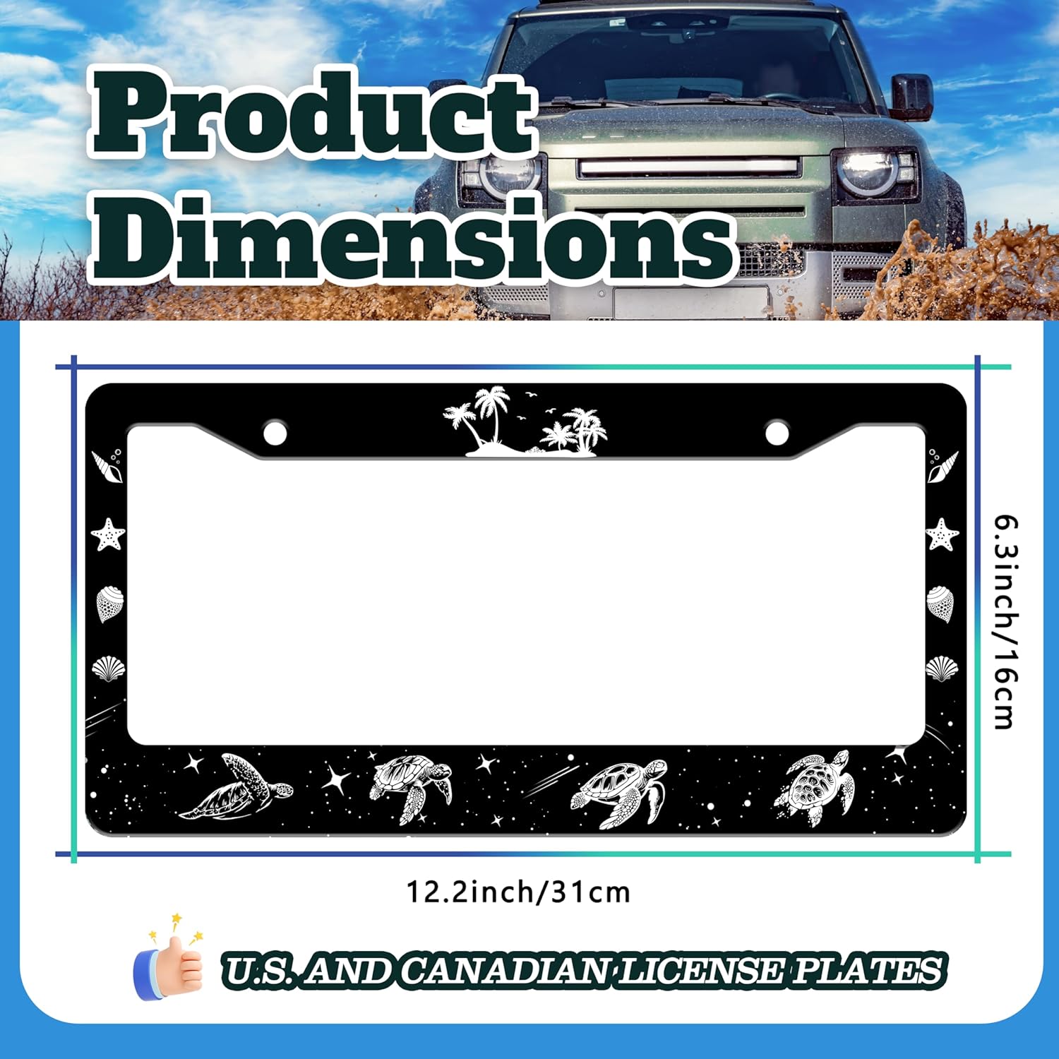 - 6.3 X 12.2 INCHES: Suitable for most standard size U.S. and Canadian license plates, can be applied to front or rear license plates, universal style. Add points to the beauty of your car!