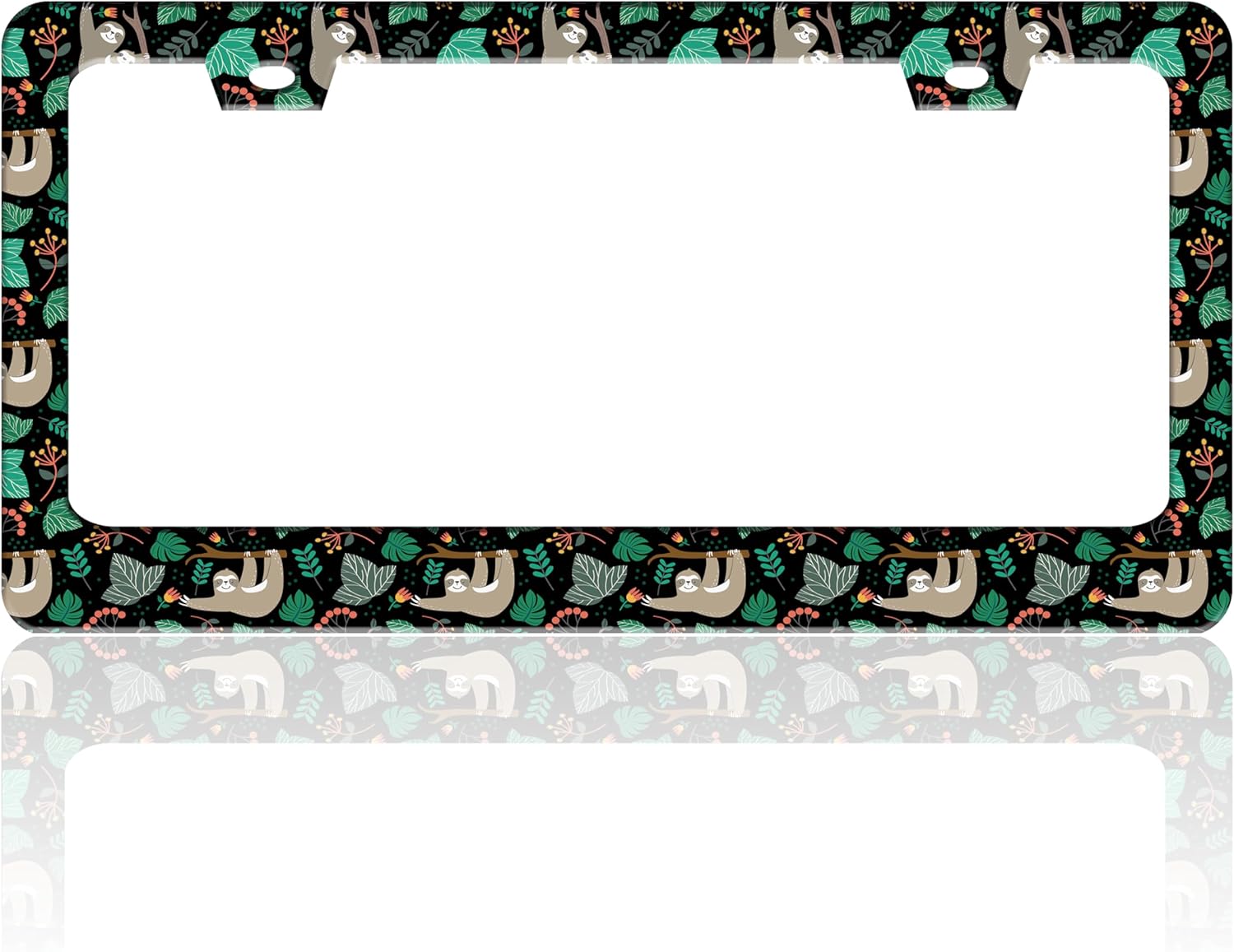 Cute Sloth License Plate Frame Funny Animal Climbing Tree License Plate Holder for Front or Rear Car Tags Stainless Steel Car Decoration with Screws 6.3 X 12.2 in
