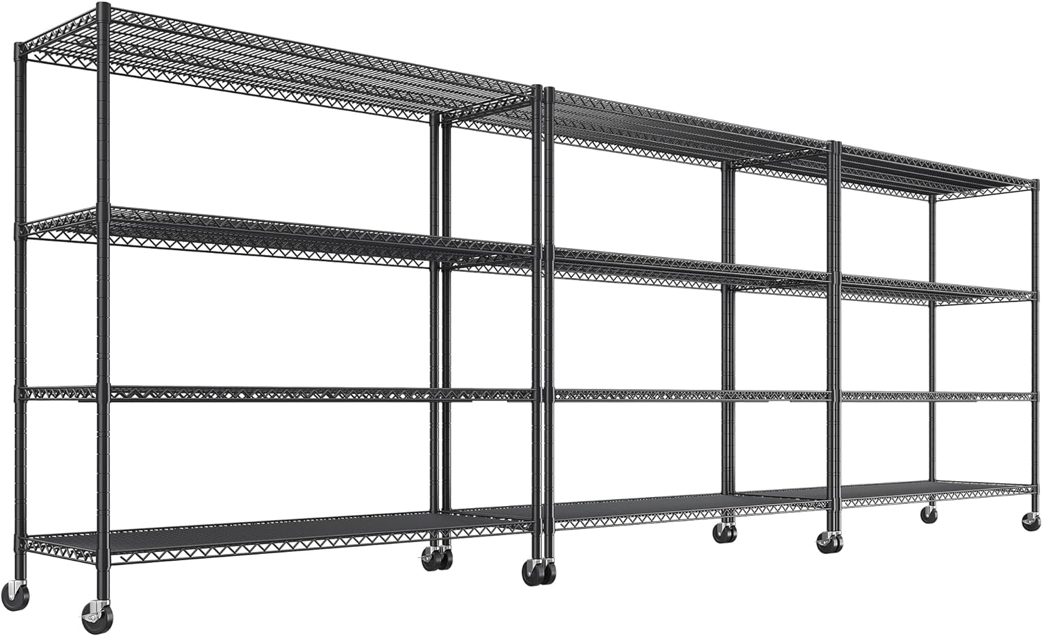 - 【Large Storage Space Wide Metal Shelves】The size of wire shelf storage rack on wheels is 75.6"H X 55.5"W X 24"D. The capacity of wire shelving is twice that of the market shelves, easily meeting your storage needs.The 4 tier metal shelf unit not only expands your storage space, makes your home clean and orderly, is your best choice.The metal storage rack can be placed in kitchens, bathrooms, rooms, living rooms, warehouses, offices, commercial exhibitions, hotels, supermarkets, etc;
