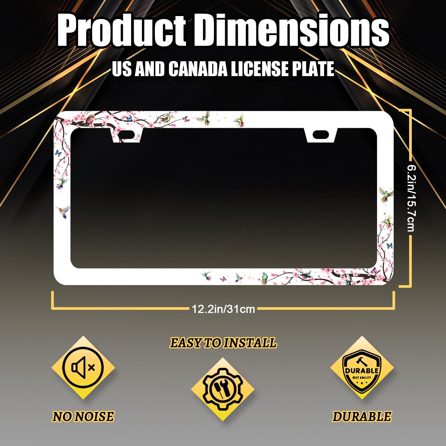 Hummingbird License Plate Frame Cherry Blossom Pink Flower License Plate Holder Colorful License Plate for Car Decoration Stainless Steel Bird Car Accessories with Screws Women 12.3"x6.3"