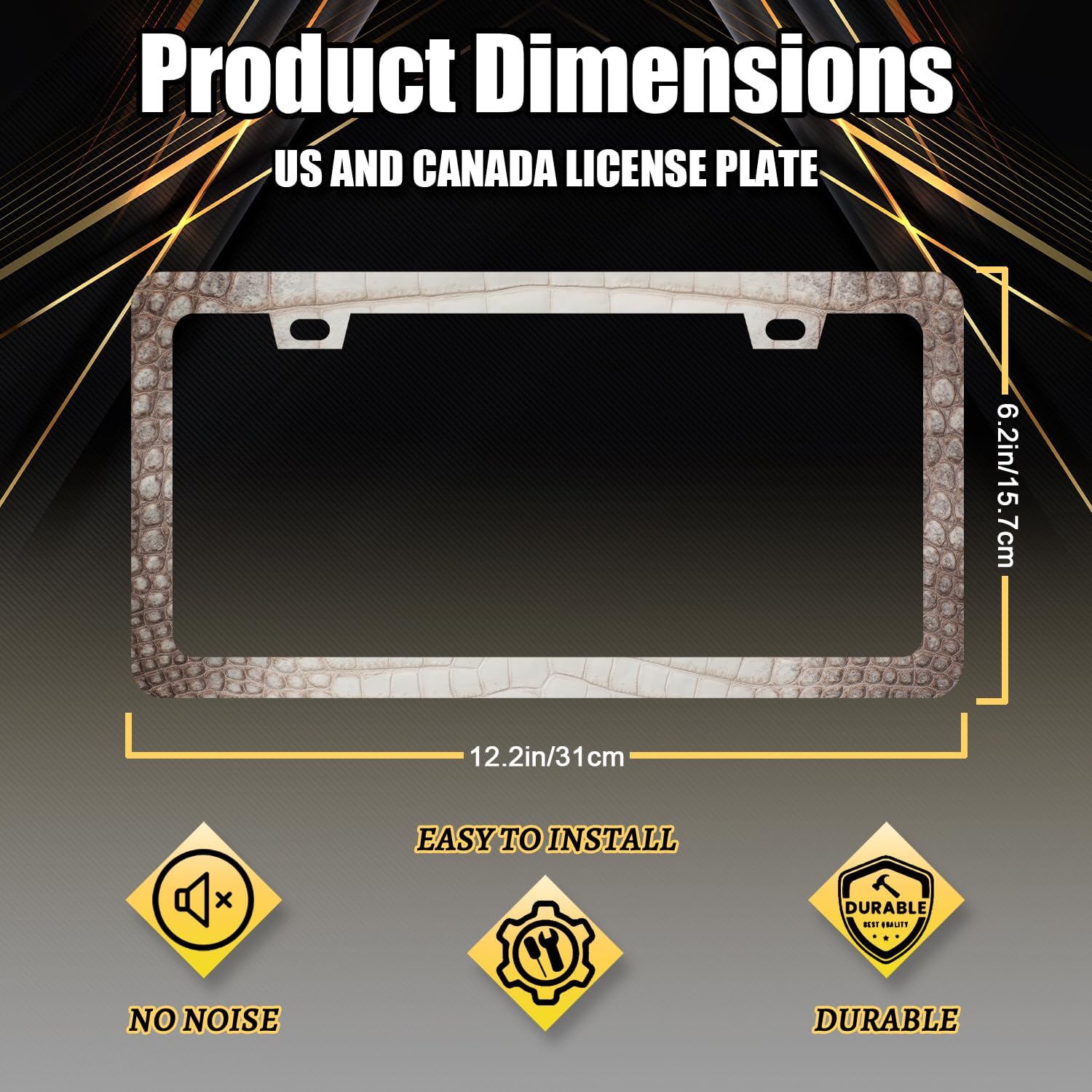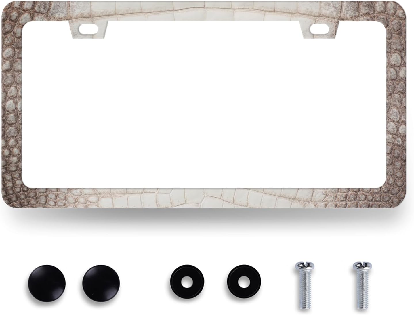 Crocodile Skin Print License Plate Frame Cool Animal Texture License Plate Holder Funny License Plate for Car Decoration Stainless Steel Car Accessory with Screws Men Women 12.3" x 6.3"