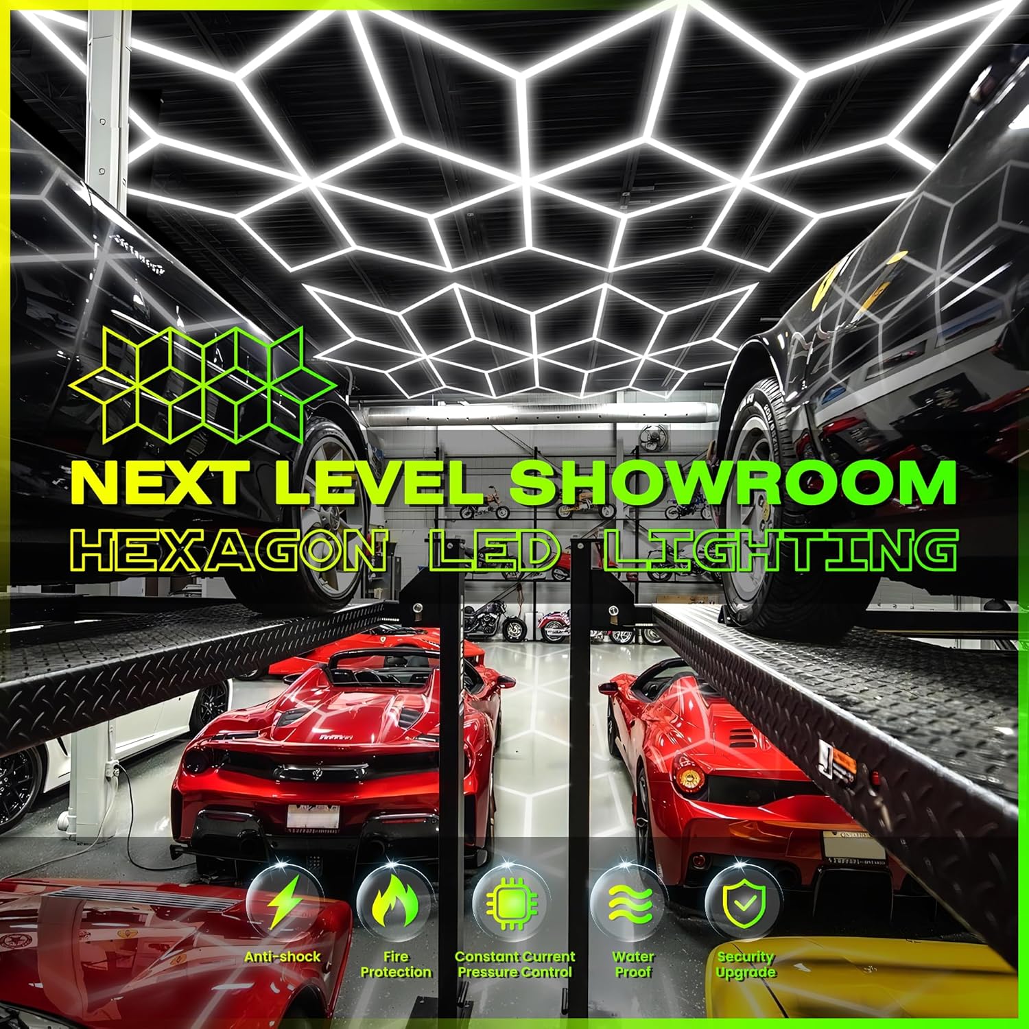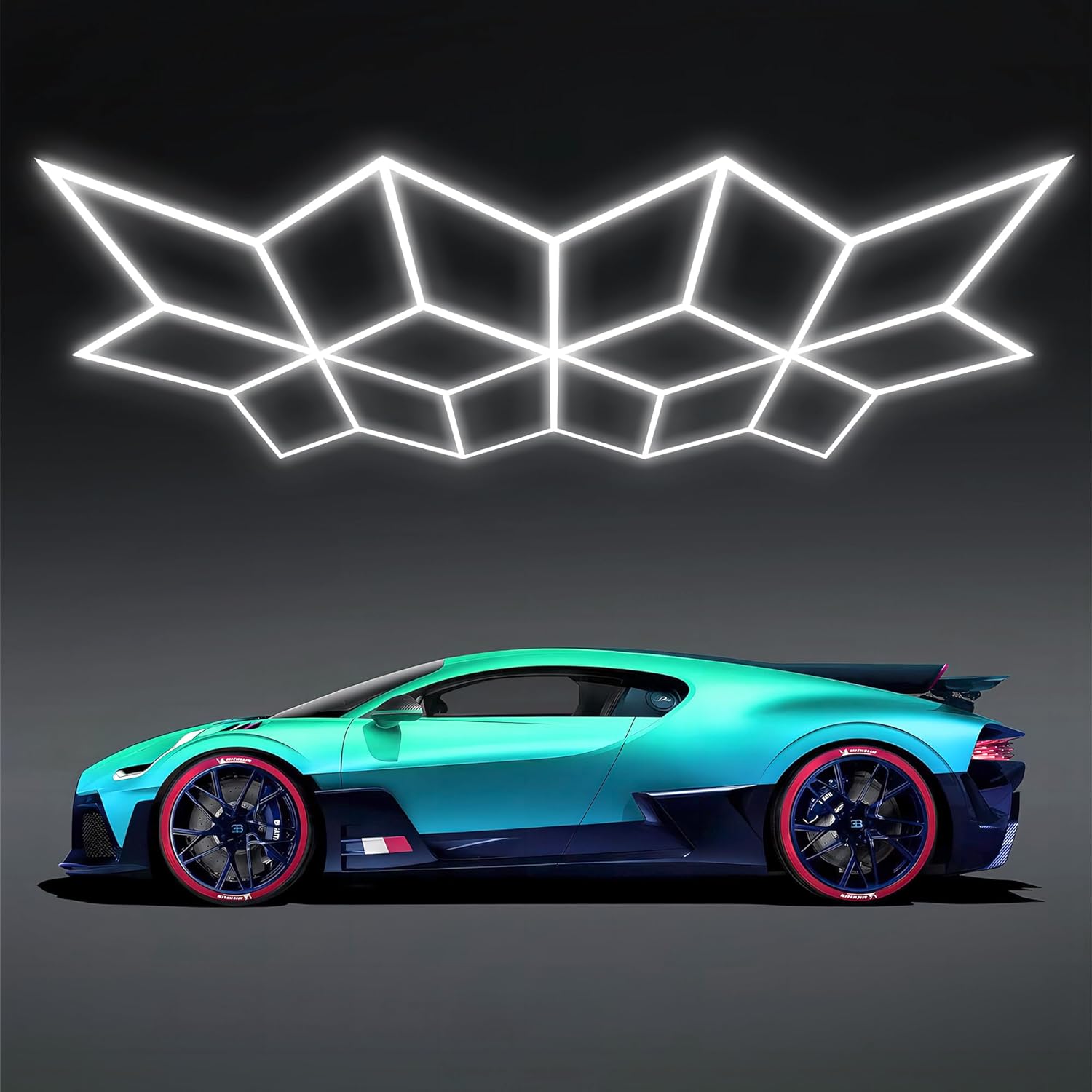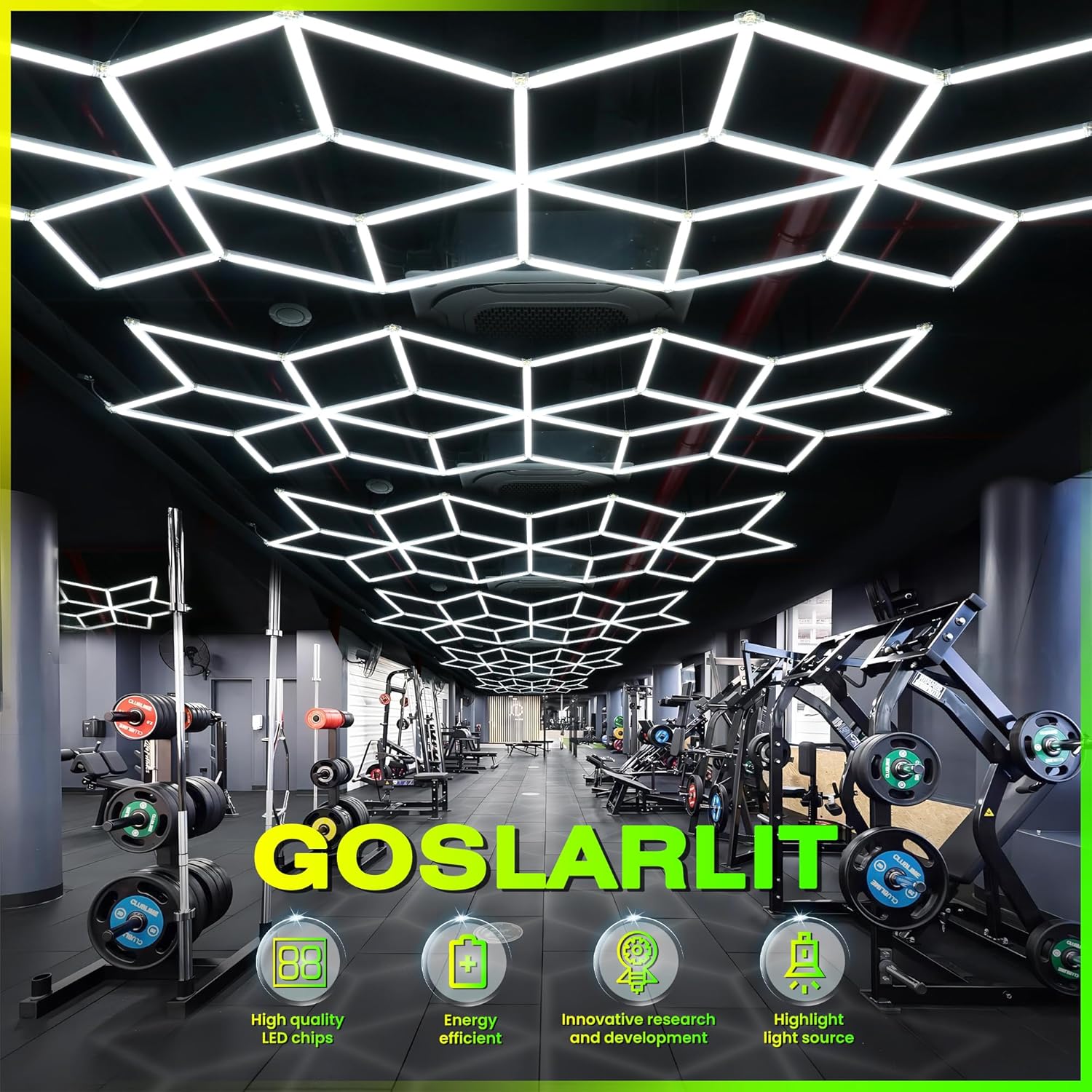 GOSLARLIT LED Garage Light Hexagon, Hexagram Shop Detailing Lights, 6500K Daylight White, Linkable Plug-in Ceiling Light for Garage Workshop Basement Gym Warehouse
