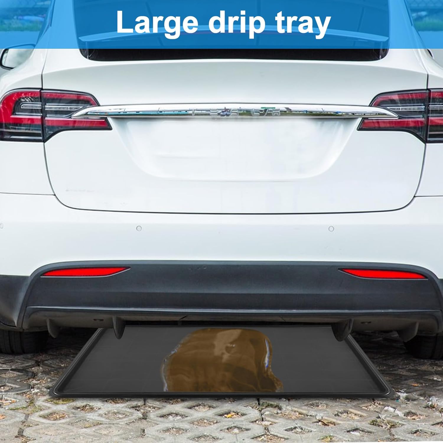 - Extra Large Automotive Drip Tray : Our car oil drip tray size is about 35.4 x 24 / 90 x 60cm, height is about 1.6 inches / 4 cm, the extra large size and edge height can minimize the occurrence of oil leakage, and square oil drip mat for under car can effectively collect the oil without staining the floor.