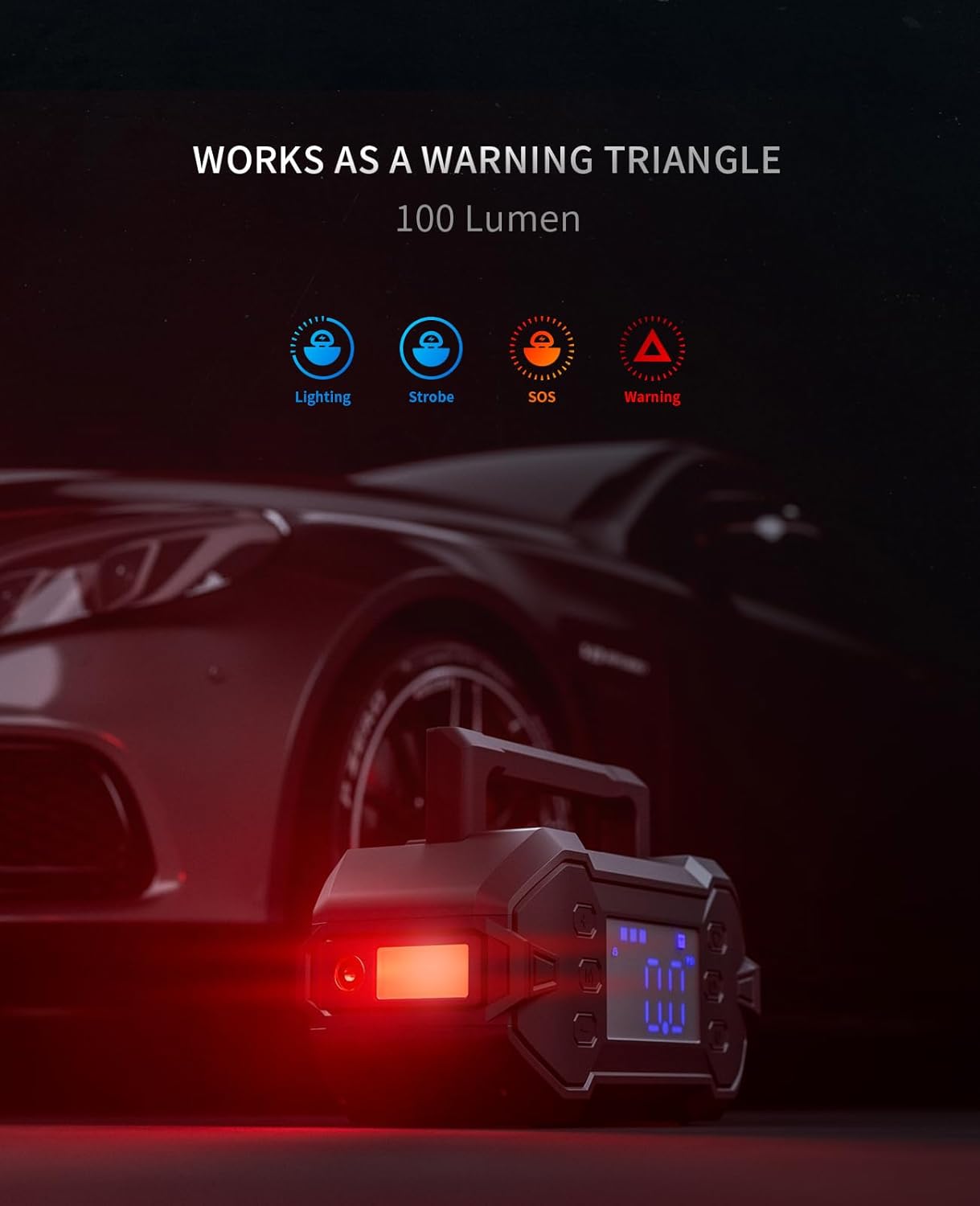 - Integrated Air Compressor: This Jump Starter comes with a built-in high-efficiency air compressor, perfect for quickly inflating tires, sports equipment, and more, making it a must-have for outdoor activities and urgent inflation needs.