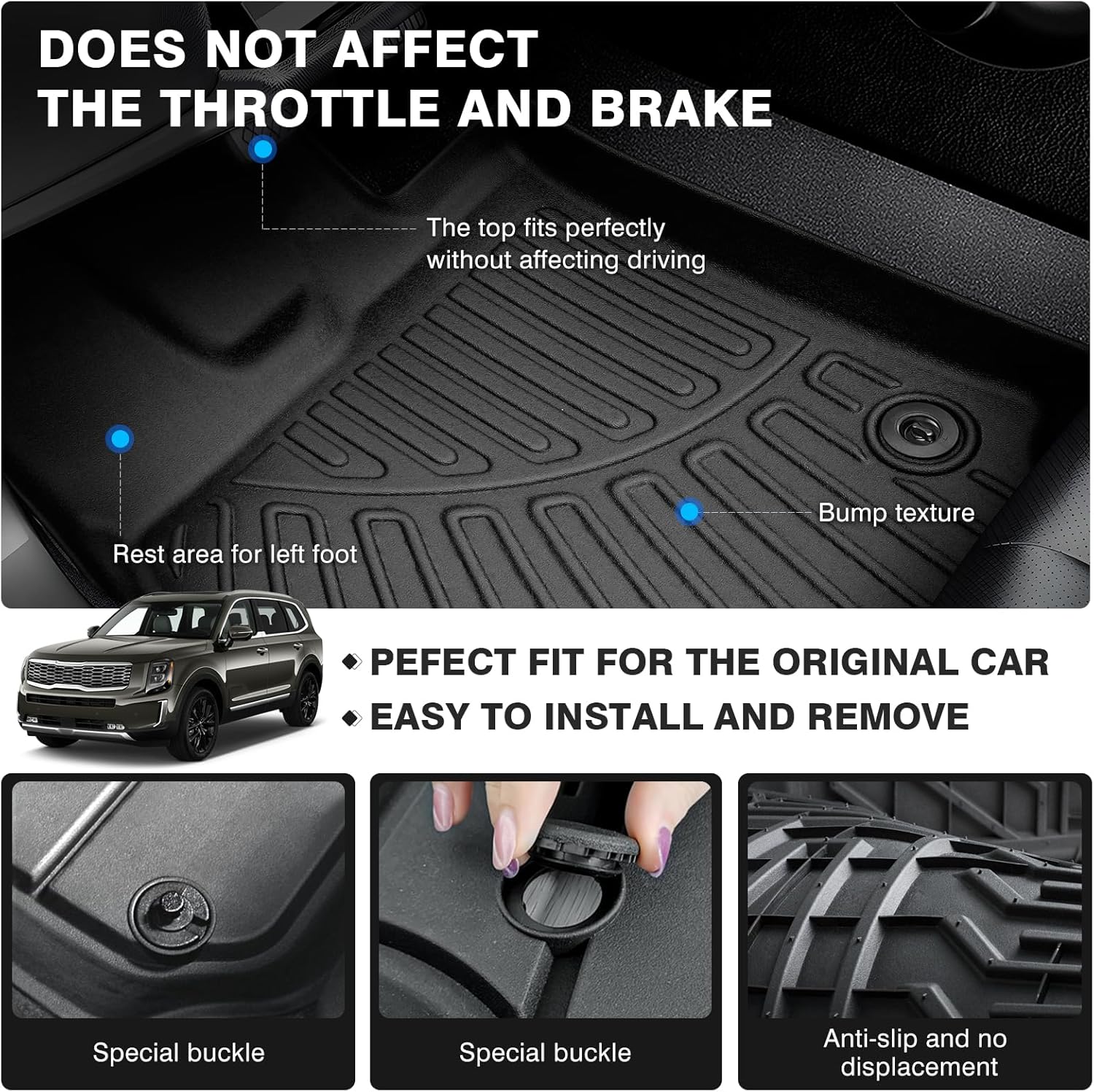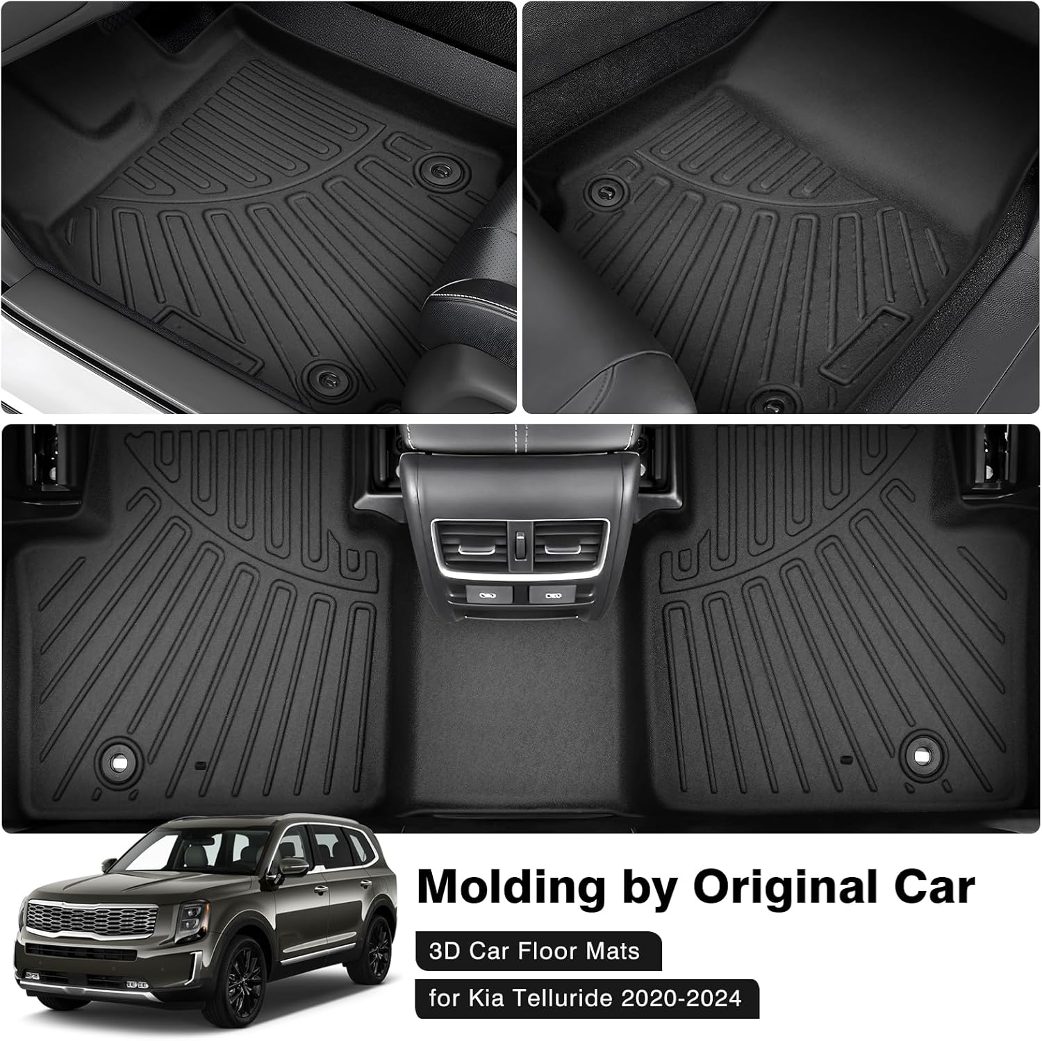 - 【Crafted for Tellurider Exclusivity】 Introducing premium floor mats, that seamlessly integrate with your 2020 2021 2022 2023 2024 2025 2026 Kia Telluride 3rd row through precise 3D-scanned design, eliminating the need for trimming. (ATTENTION: ONLY FOR 7 & 8 Seats)