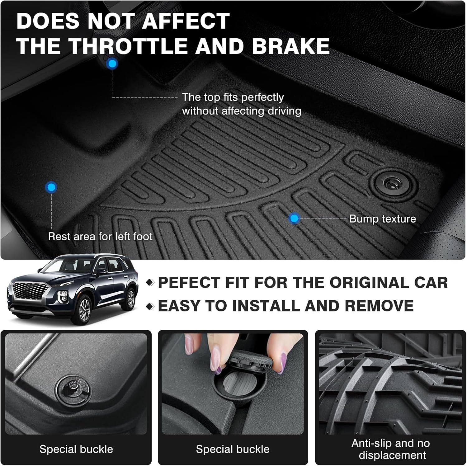 - 【Crafted for Palisade Exclusivity】Introducing premium floor mats, that seamlessly integrate with your Hyundai Palisade 2020 2021 2022 2023 2024 2025 through precise 3D-scanned design, eliminating the need for trimming.