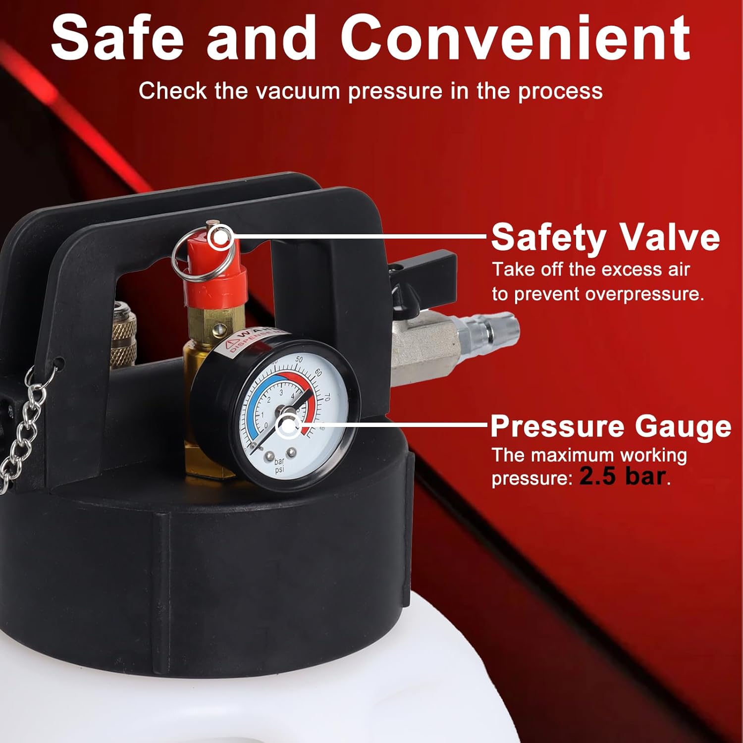 - User-friendly Operation: Enjoy effortless connection with the quick-release coupling, precise flow control with the convenient valve and real-time progress monitoring with the built-in scale and transparent hose. The wide weighted base provides stability during use.