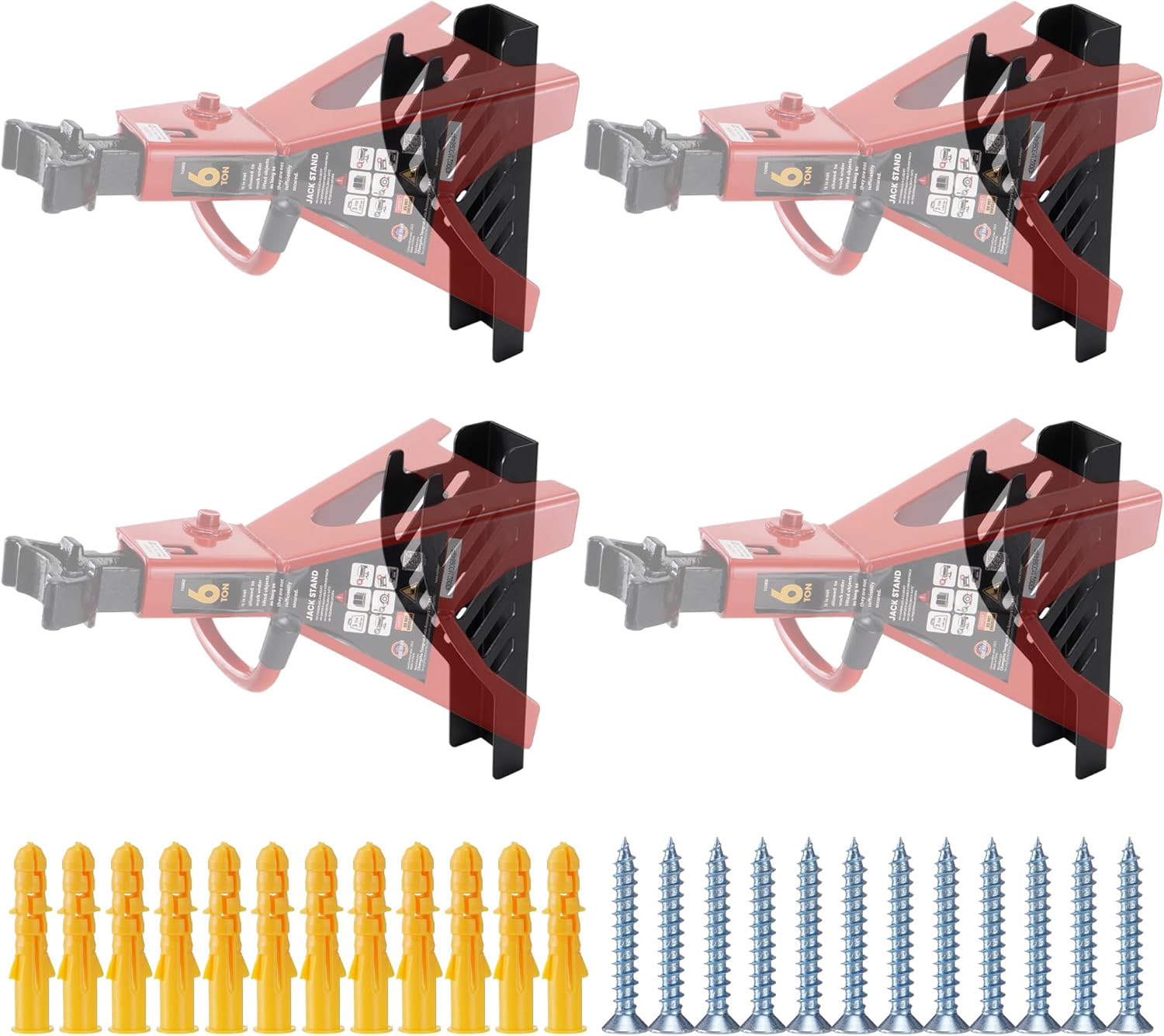 - Jack Stand Storage Rack Comes with 4 Wall Mounts, 8 Drywall Anchors and Screws for Easy Installation