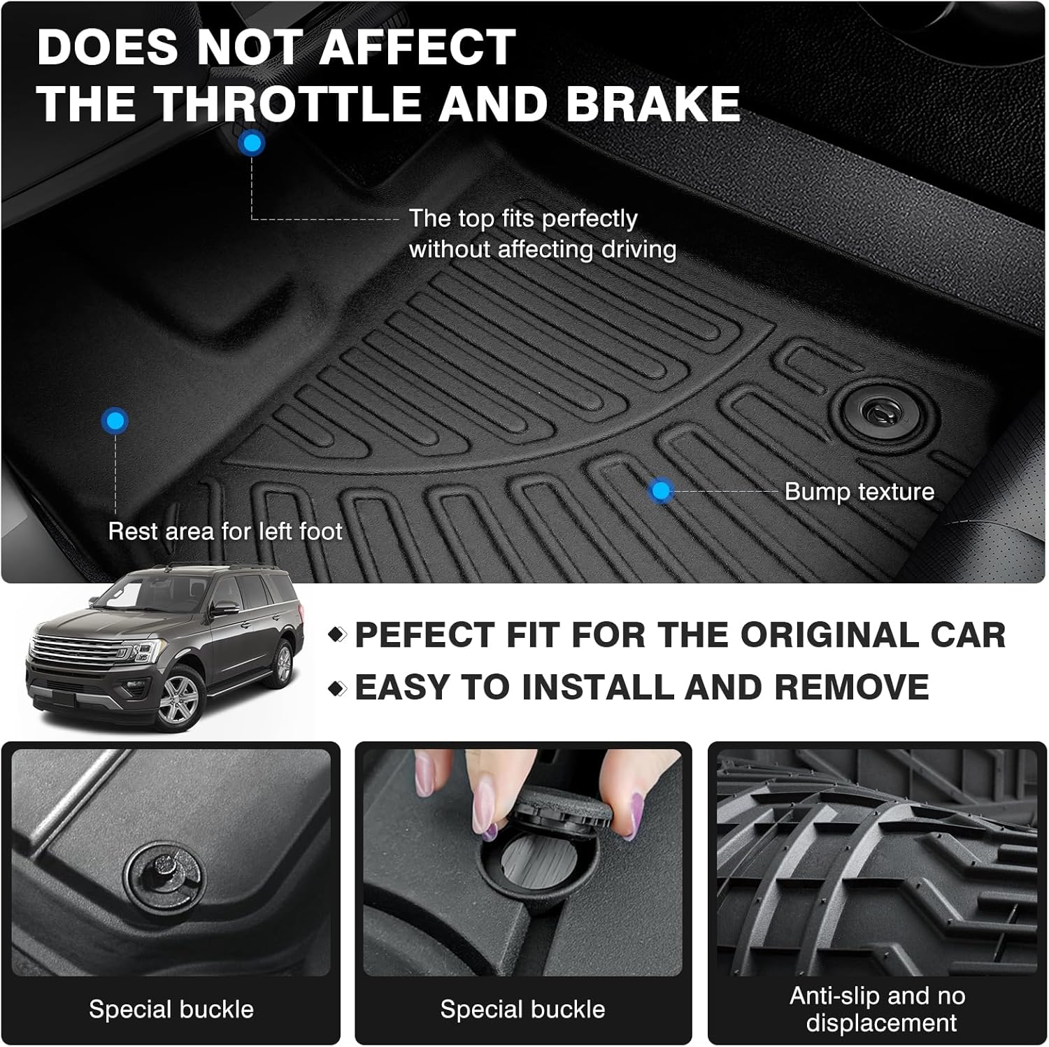 Powerty Floor Mats for 2018-2024 Ford Expedition with 2nd Row Bench Seat Accessories All Weather Floor Liner 3D TPE 1st & 2nd Row Floor Mat Heavy-Duty Floor Liners