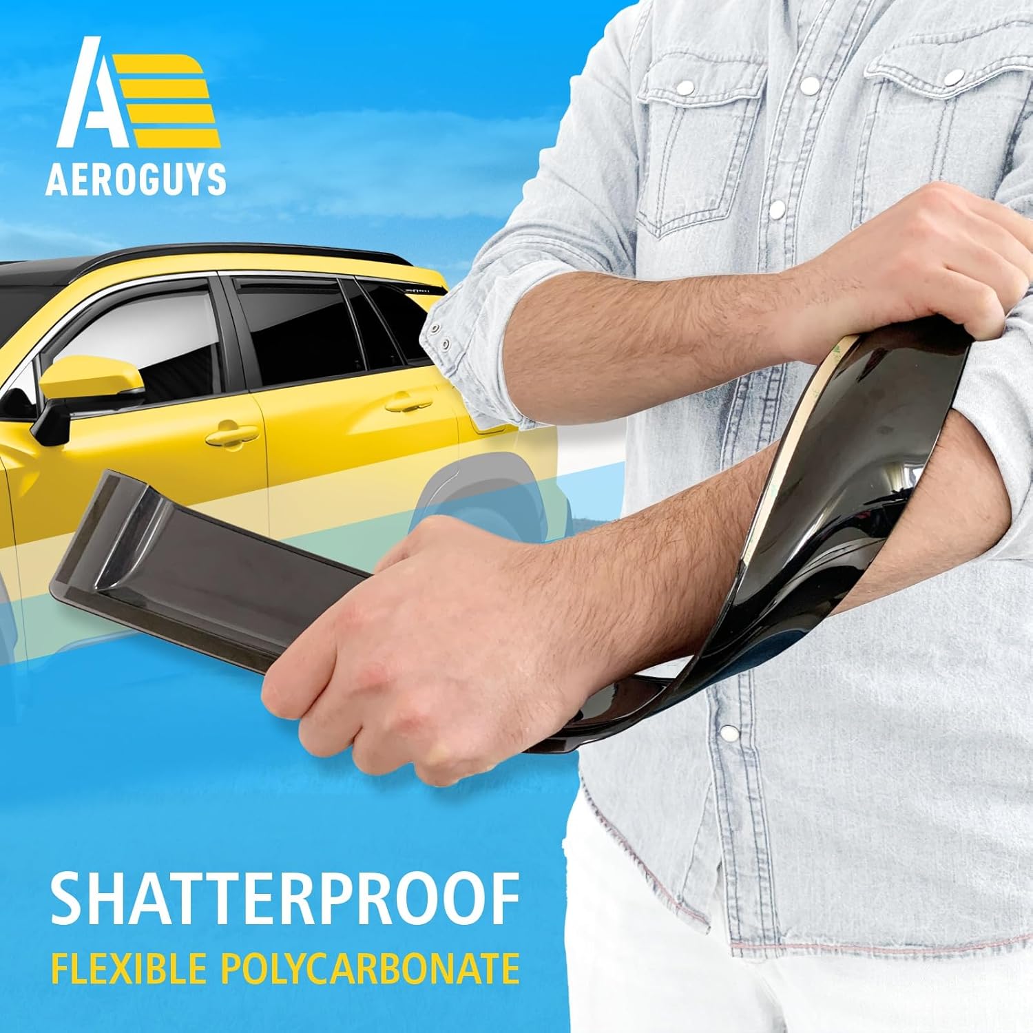 - Incredibly Durable AEROGUYS Auto Window Deflectors – They are made with strong and tough polycarbonate which is clear and scratch-resistant. They also provide UV protection making your ride more comfortable under all weather conditions.