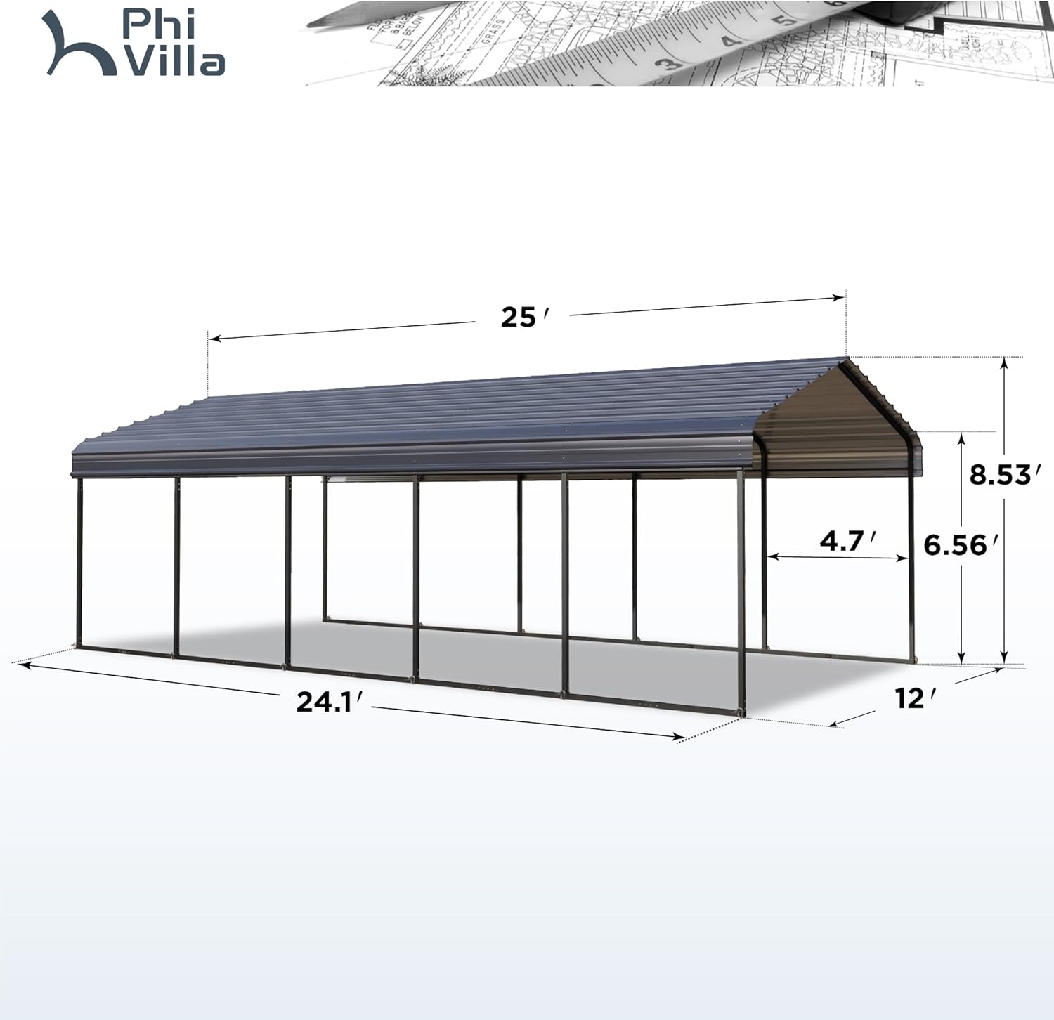 - Dimensions:The fully assembled shed steel carport measures 12‘x 25’x 9‘, Please kindly note that this carport will be delivered in a total of 4 boxes which may arrive at different Please wait patiently for all boxes before installing them. For customer support, questions, and concerns, please contact us. We promise to respond to any customer message within 24 hours.