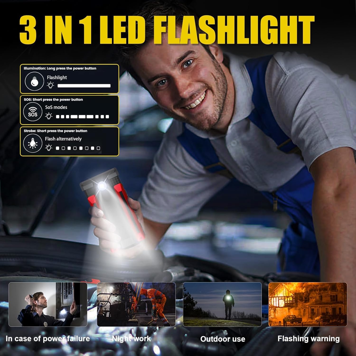 - 【More Than a Jump Box】In addition to its jump-starting capabilities, this portable jump starter also features three flashlight illumination modes - normal, strobe, and SOS - providing emergency lighting in different scenarios. Not only does this jump starter come to the rescue when your car battery is dead, but it also doubles as a power bank. The USB port allows you to charge your mobile devices, ensuring that you stay connected even in remote locations. Compact and lightweight, the Scatach 002 Car Jump Starter is the perfect companion for any road trip or emergency situation. Don't leave home without it!