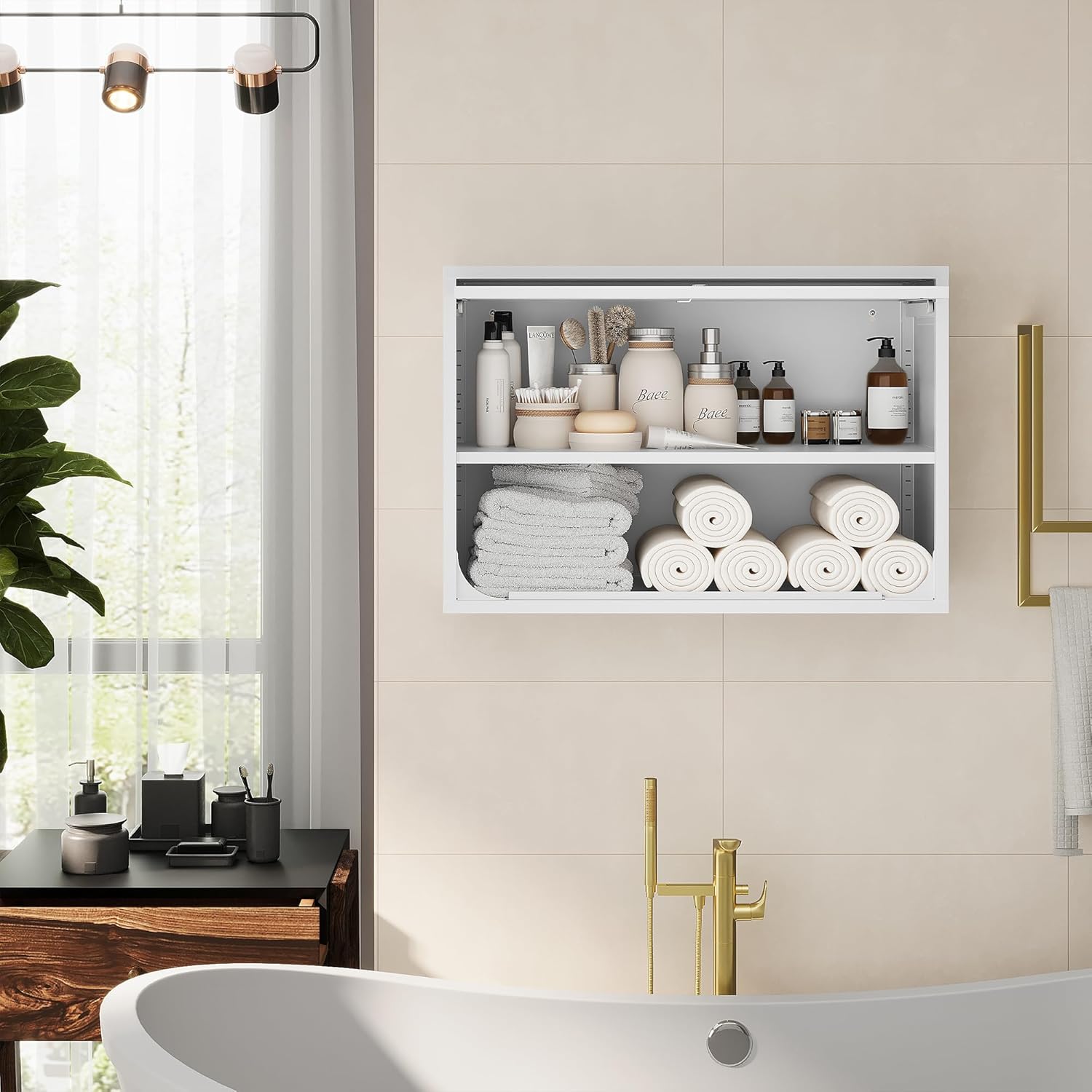 - High-quality - Our metal wall cabinet is crafted from 0.6mm thick SPCC steel plate, which compared to inexpensive wooden and plastic wall cabinets, can withstand significantly more weight. Each shelf can bear up to 120 pounds. It is the optimal choice for maximizing your storage space.