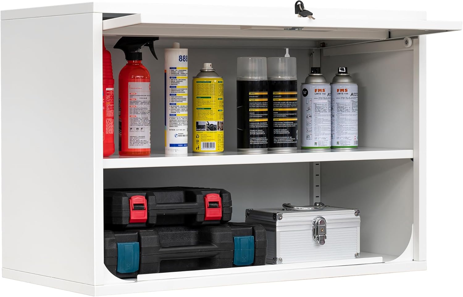 Metal Storage Cabinet White Wall Cabinets with Shelf and Locking Door - Wall Mounted Storage Cabinet for Garage Warehouse Home Office - Assembly Required