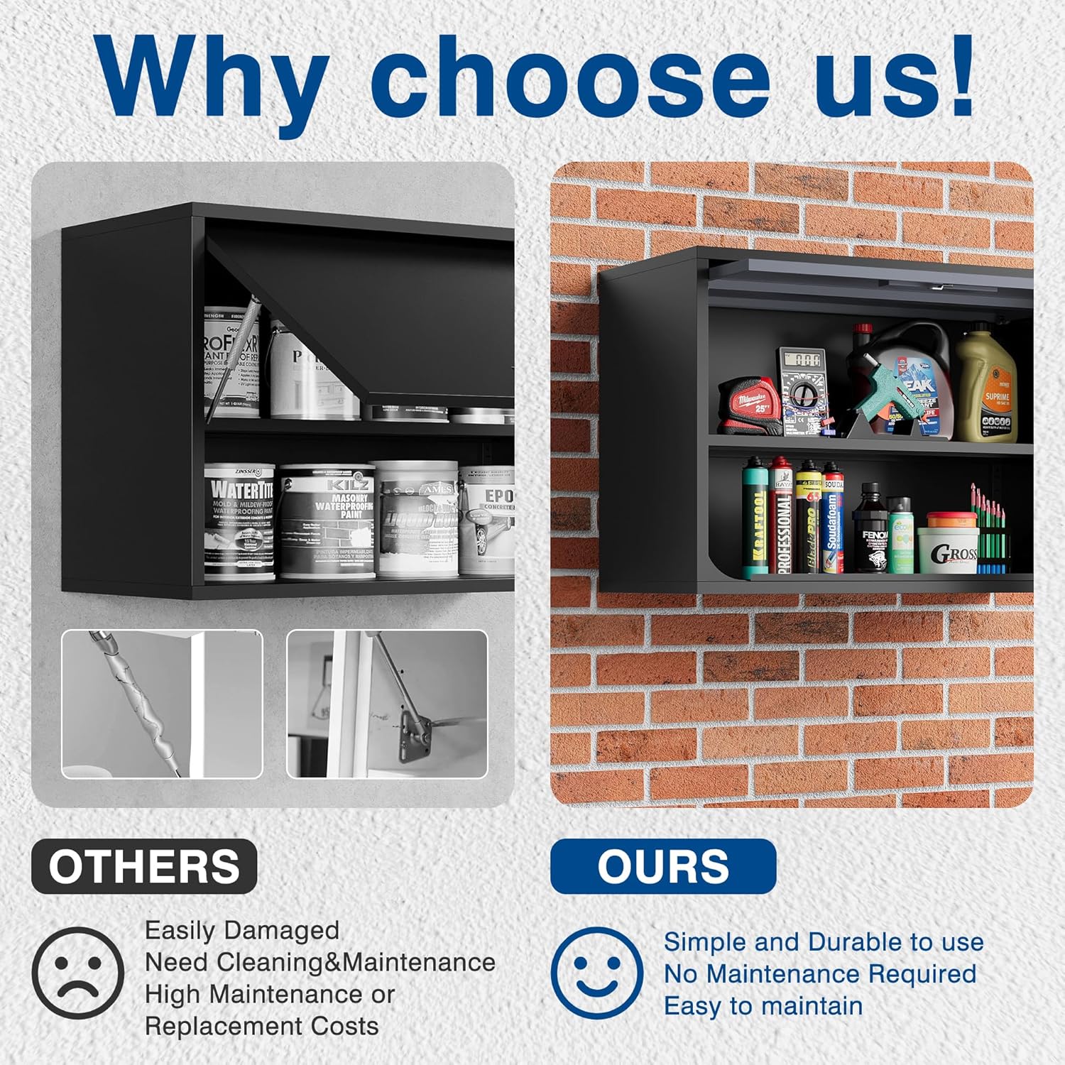 - Maintain a Tidy Room - This metal wall cabinet offers ample storage space for you, perfect for organizing tools, office supplies, household items, and more. It can be mounted on the wall of your garage, office, utility room, or any space where clutter needs to be tidied up.