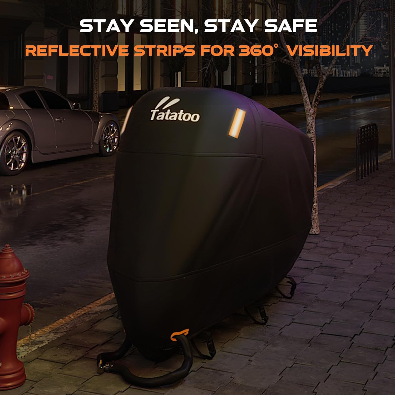 - 【Quality Material】The Tatatoo motorcycle cover is crafted from upgraded 300D Oxford fabric, designed to resist friction, scratches, and everyday wear and tear, ensuring long-term protection for your motorcycle.