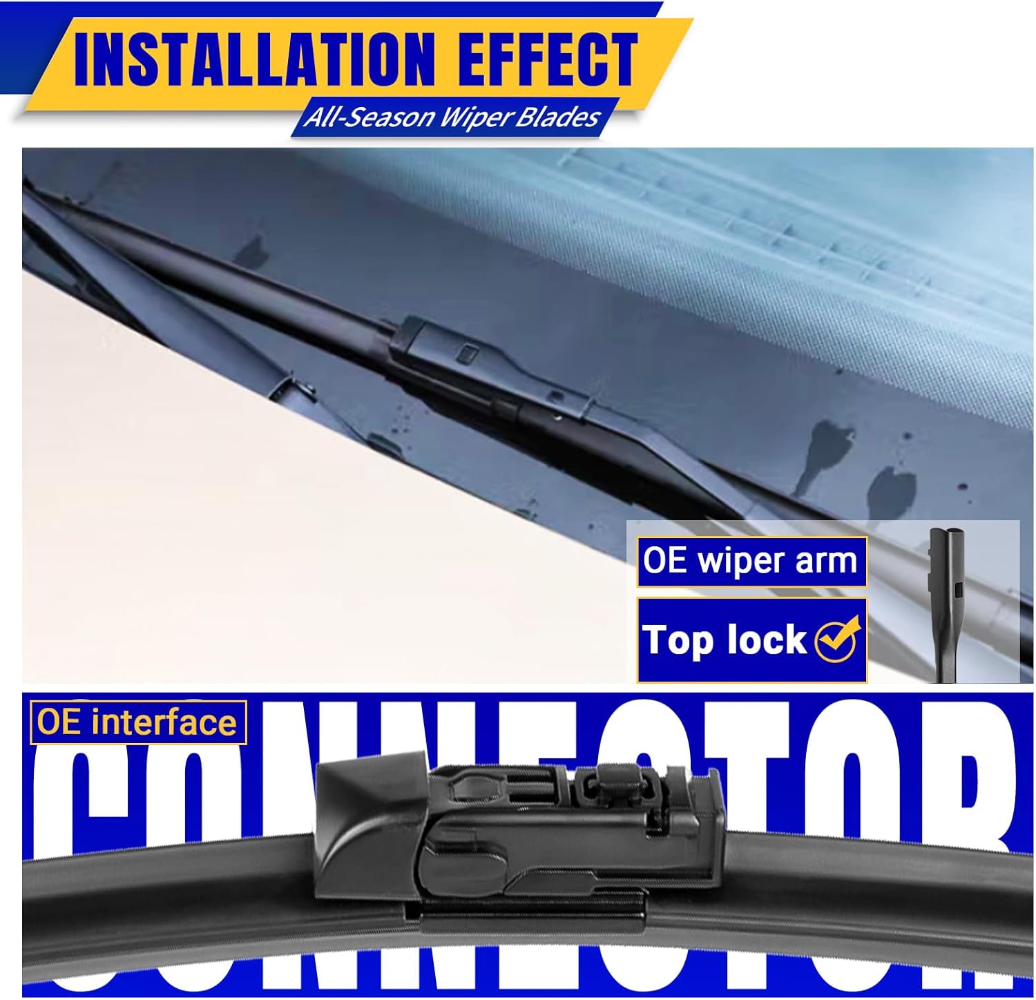 - 【Performance】: High service life, quiet application, clean the front windshield thoroughly, ensure clear visibility, all-weather and all-season wiper blades