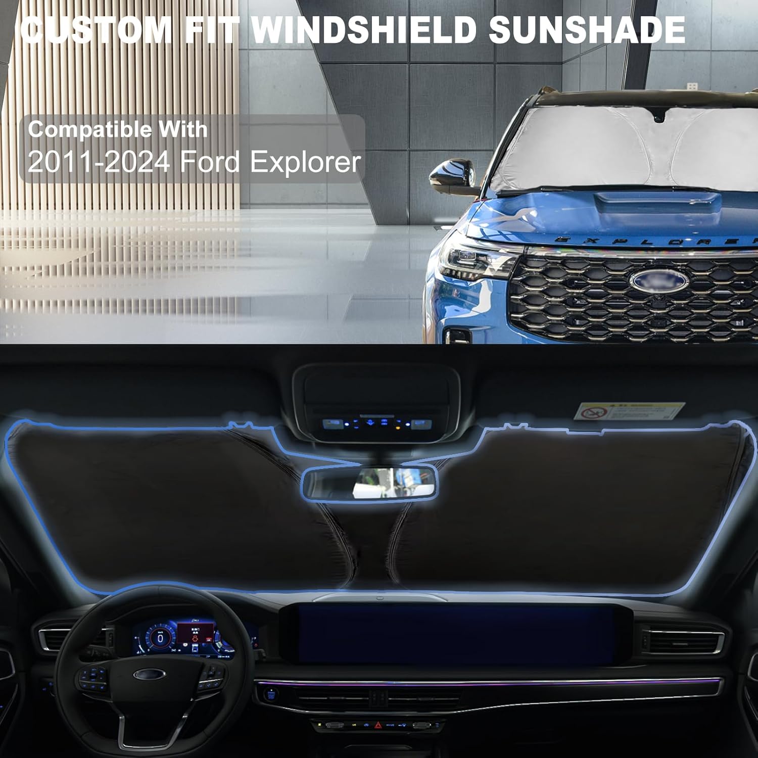 - 【Custom Fit for 2011-2024 Ford Explorer 】: SLOGENTO Windshield Cover specifically to fit the windshield of your Ford Explore 2011-2022 2023 2024, ensuring a seamless and perfect fit that enhances the overall aesthetics of your car.