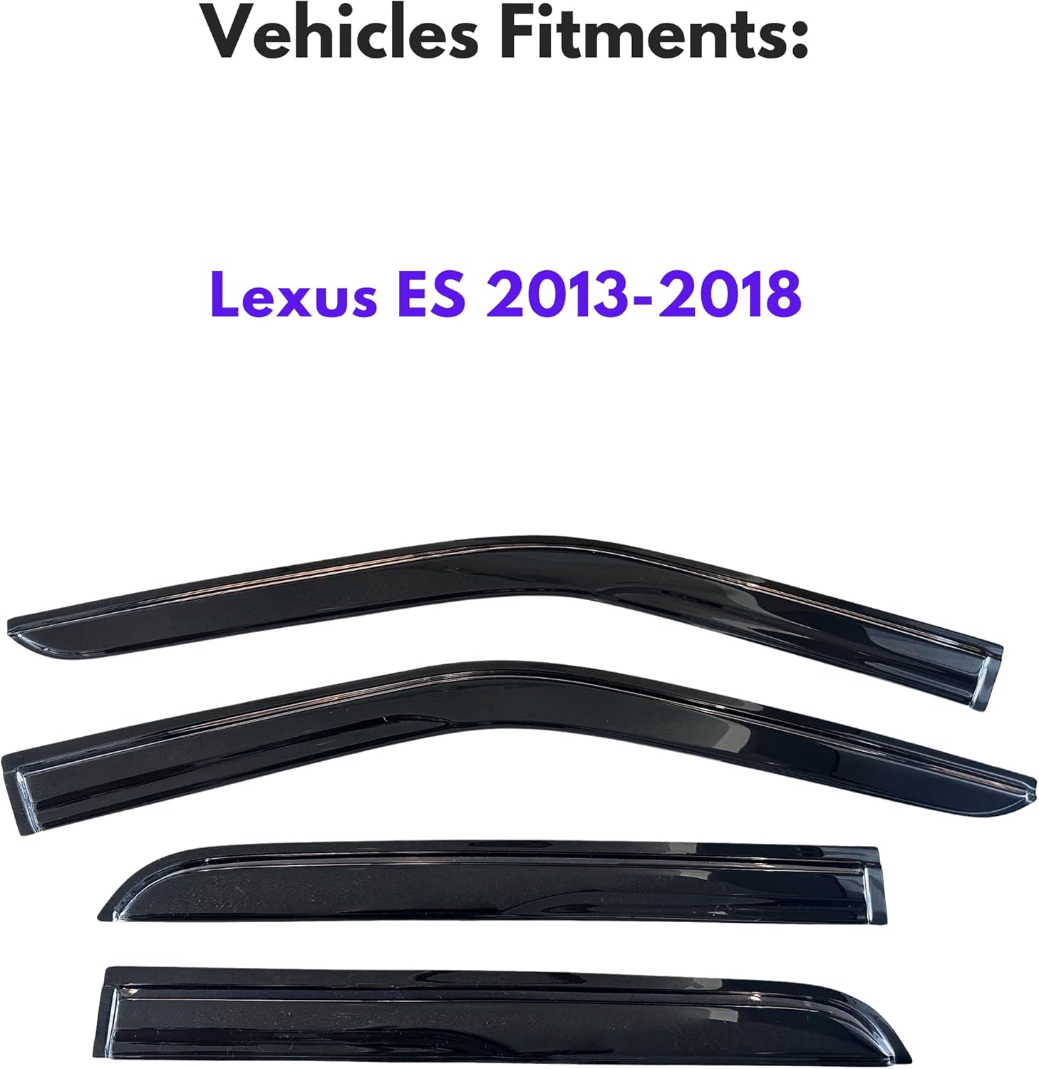 KPY Window Visor Compatible with Lexus ES 2013-2018, 4PC Rain Guard Side Window Vent Deflectors Tape-On Mugen Style, 2013 2014 2015 2016 2017 2018