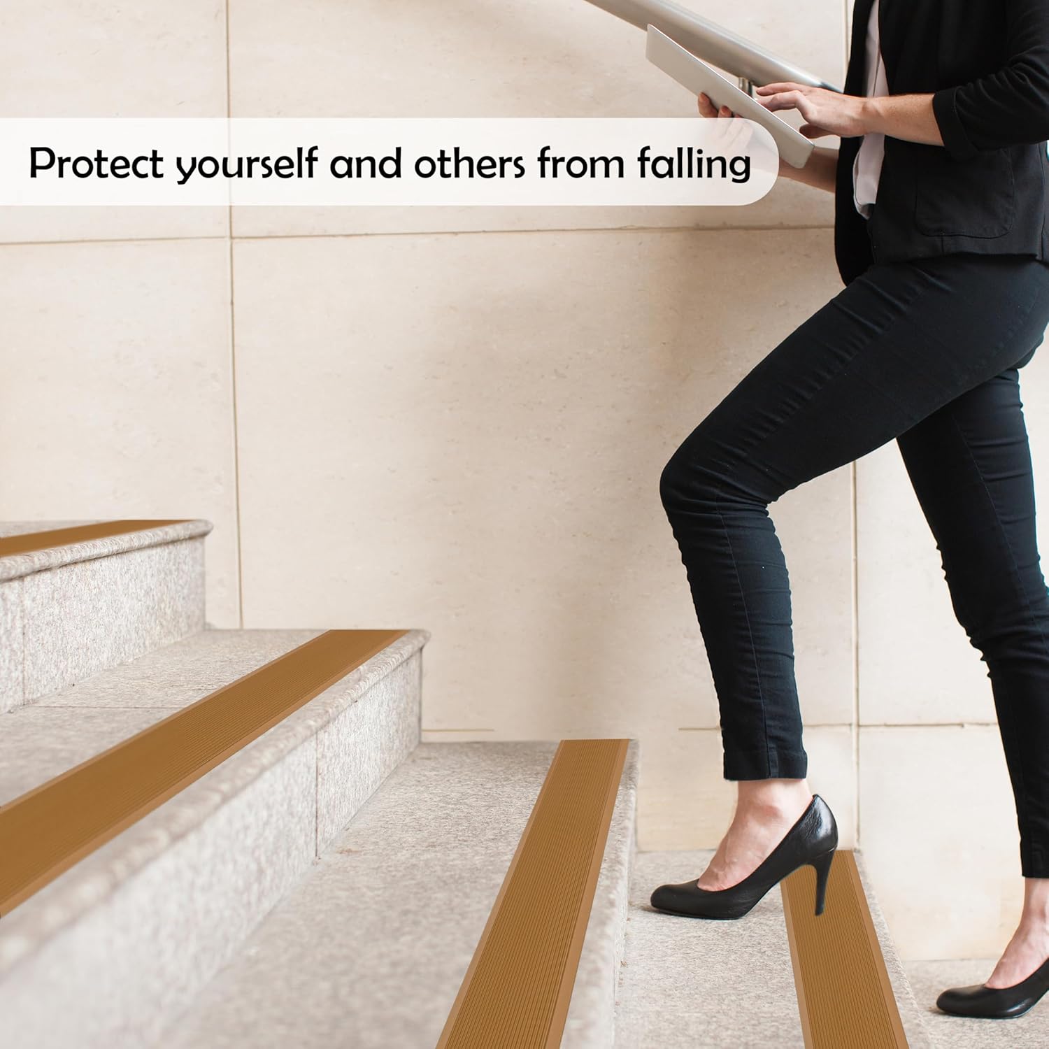 - STRONG SELF-ADHESIVE WORKS ON ANY SMOOTH SURFACE – Its strong self-adhesive allows it to adhere to any flat surface without difficulty. You can stick this stair treads non slip tape on wood, tile, metal, plastic, laminate, vinyl, or glass.