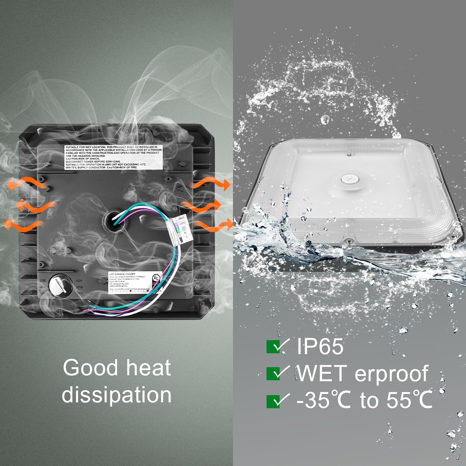80W/60W/40W Power Selectable LED Canopy Garage Light with 3CCT (3500K/4000K/5000K), LED Parking Garage Lights 90-277V IP65 Commercial Residential Lights DLC (40W/ 60W/80W Power Selectable -1 Pack)