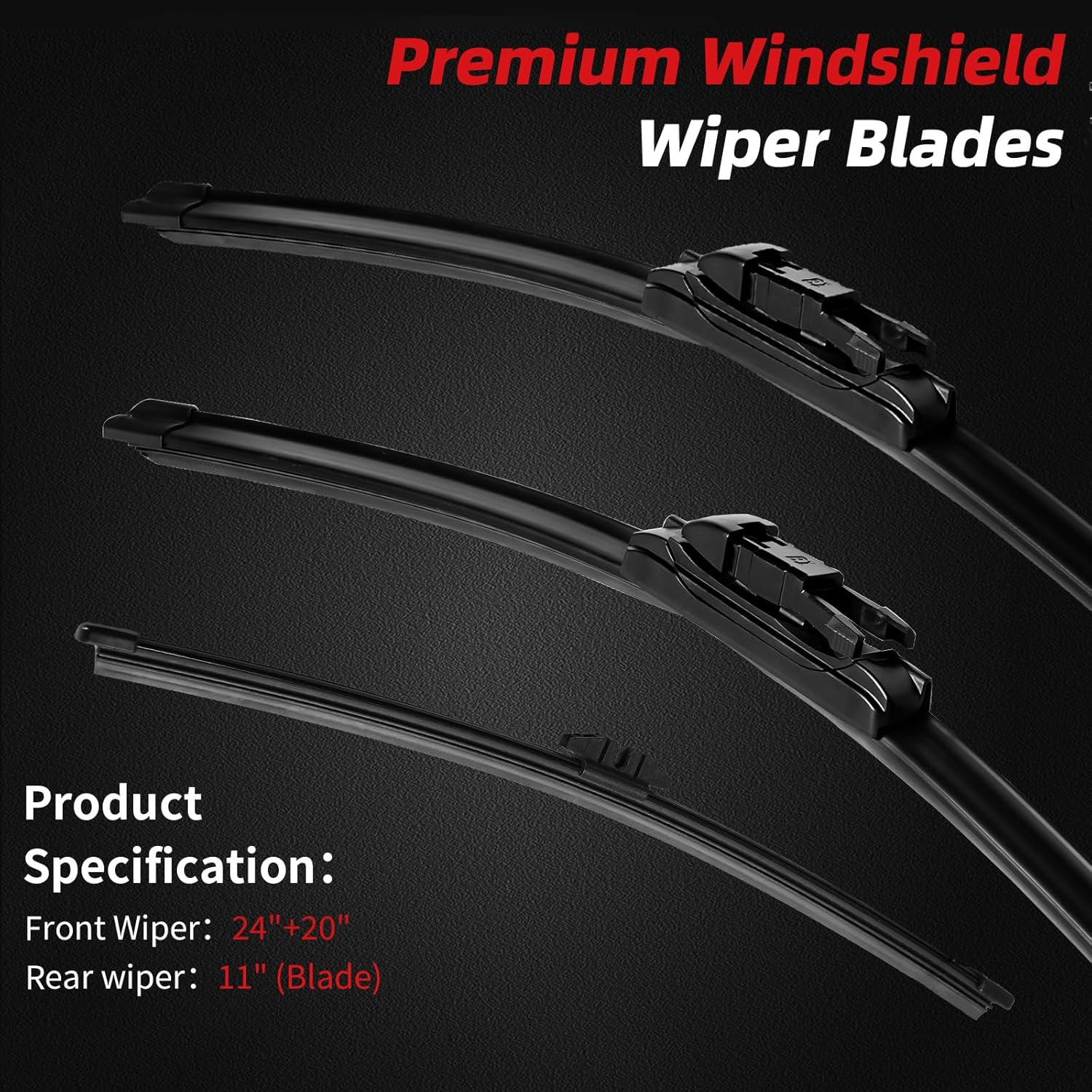 - [24"+20"+11" Perfect Fitment]: Replacement for Ford Escape 2020-2023. Our windshield wiper blades are engineered to provide a perfect fit for vehicle models, ensuring optimal performance and coverage