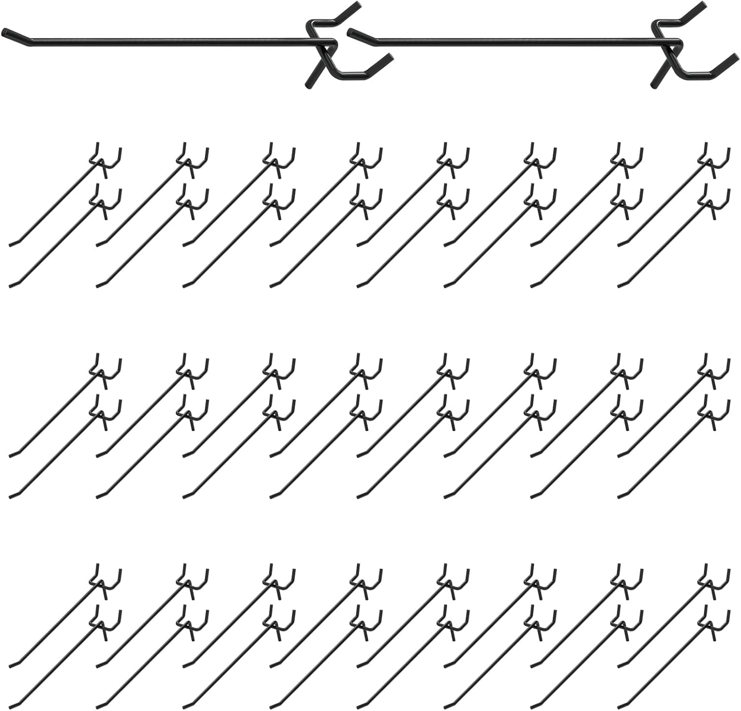 - [50Pcs Peg Board Shelving Hook] You will receive 50pcs 6"/15CM black peg board display hooks. Their thickness is approx. 4 mm/ 0.16 inch. The enough quantity will meet your space planning or replacement needs. Ideal Peg Board Organizer Accessories for Garage Tool Organization.