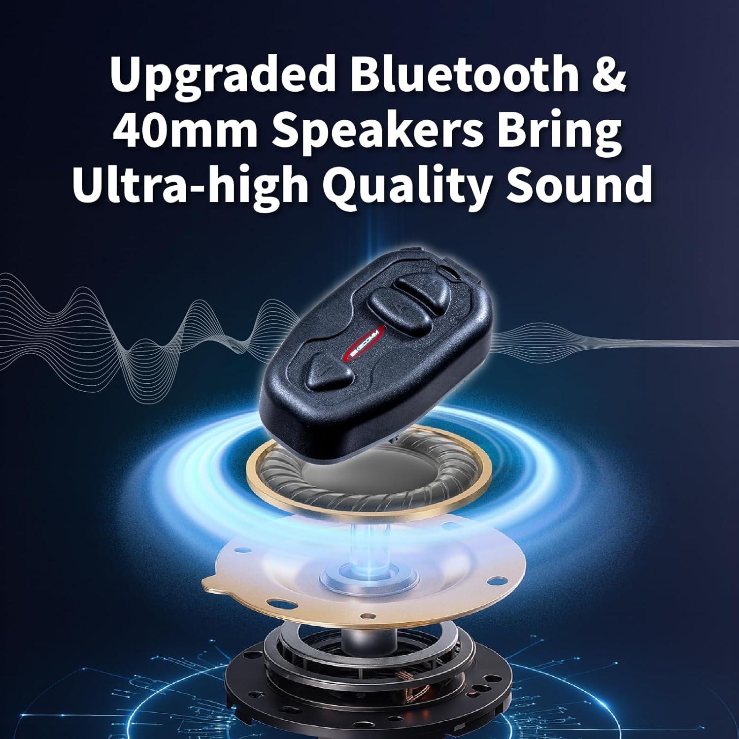 - 【Superb Hi-Fi Stereo Sound Quality】BIKECOMM SALUT headset intercom features an upgraded 40mm HD dynamic speaker, making breakthrough in bass resonance and sound clarity. With these speakers, every note and every word will come to life, delivering an extraordinary auditory experience like no other. And it also features Bluetooth 5.0 with access to Siri and voice commands, so that you can make or answer calls hands-free, listen to the music in Hi-Fi stereo, FM radio or GPS voice instruction.