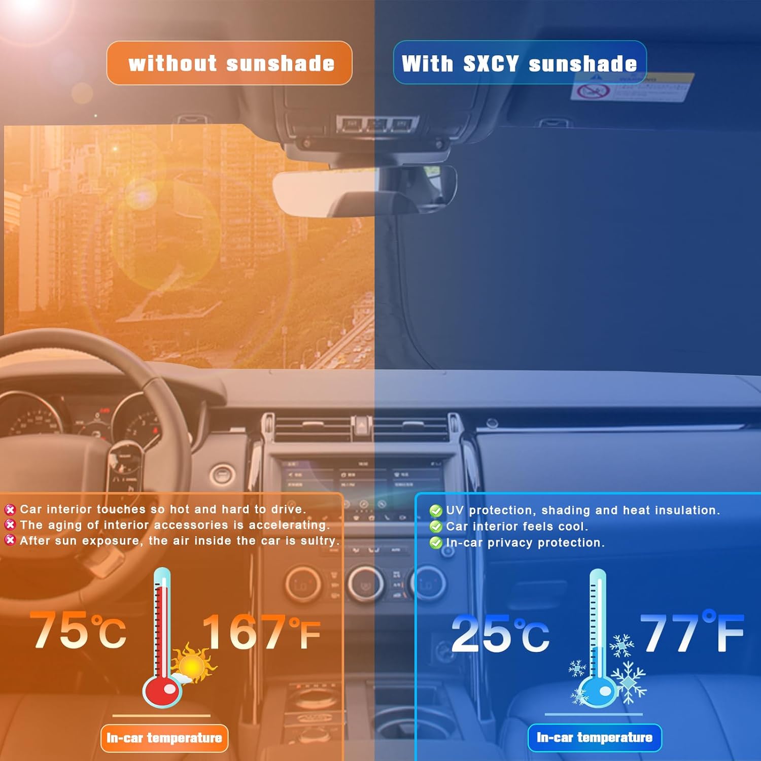 - 2.Sun Protection: Solve your concerns about parking for a long time under the scorching sun,prevent the car's interior from getting sunburned and extend your 2023 2024 Discovery S accessories’life.