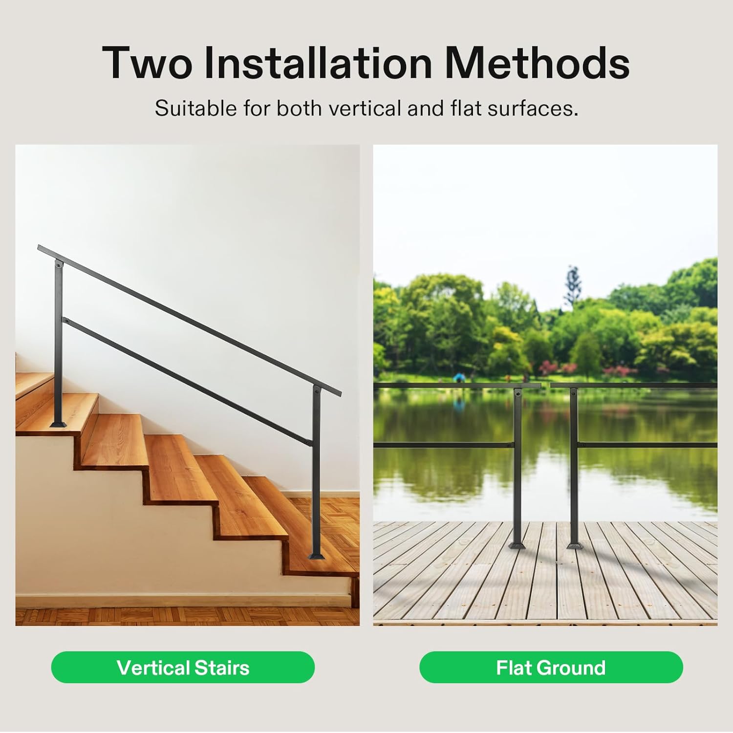 - Wide Applications: This robust stair handrail is suitable for a wide range of individuals, including the elderly, children, or those with mobility challenges; It can be conveniently installed on steps and stairs in various locations, including terraces, balconies, porches, gardens, decks, residential buildings, garages, and more