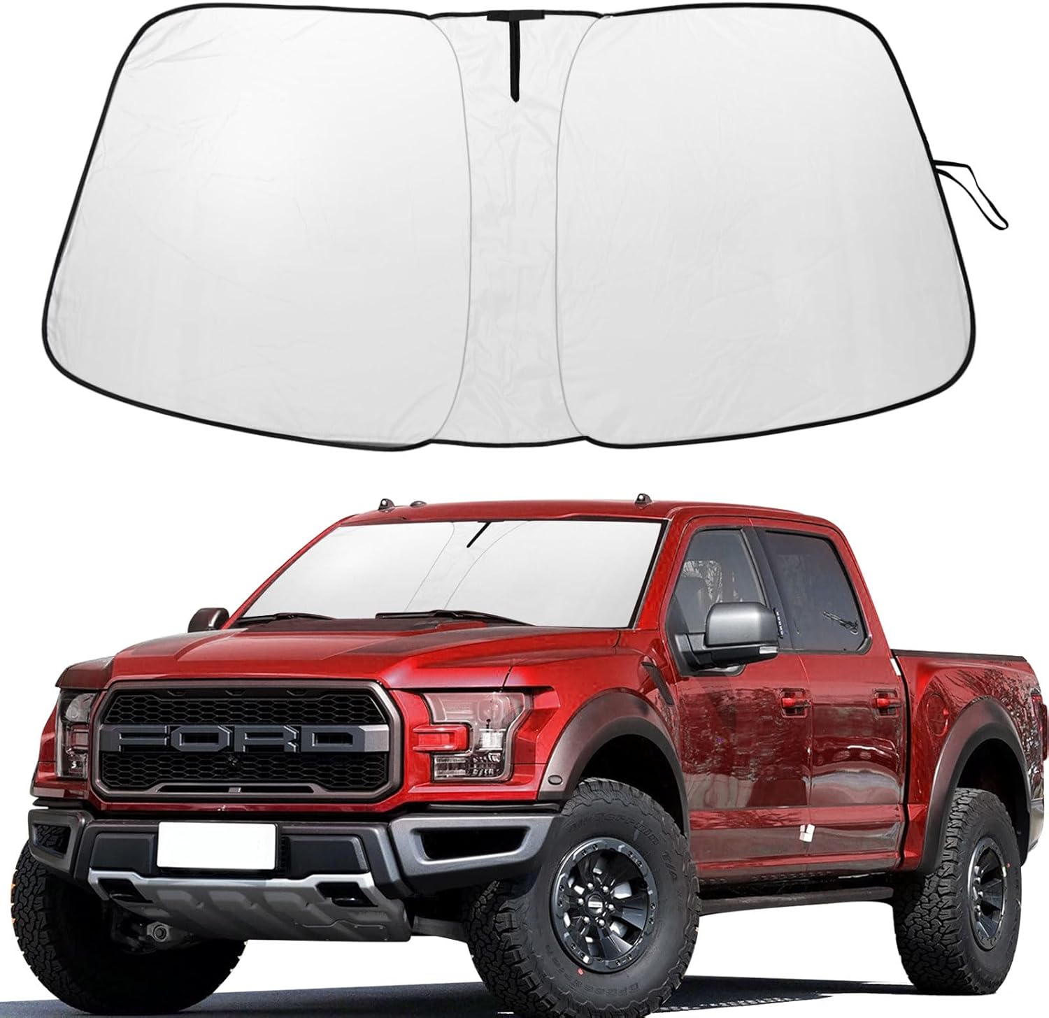 - Easy To Install And Store:F150 sun shade Made of elastic memory wire, never deformed, easy to unfold and store comes with a convenient storage bag