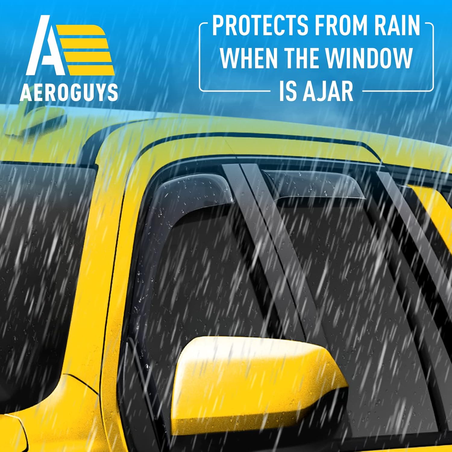 - Incredibly Durable AEROGUYS Auto Window Deflectors – They are made with strong and tough polycarbonate which is clear and scratch-resistant. They also provide UV protection making your ride more comfortable under all weather conditions.