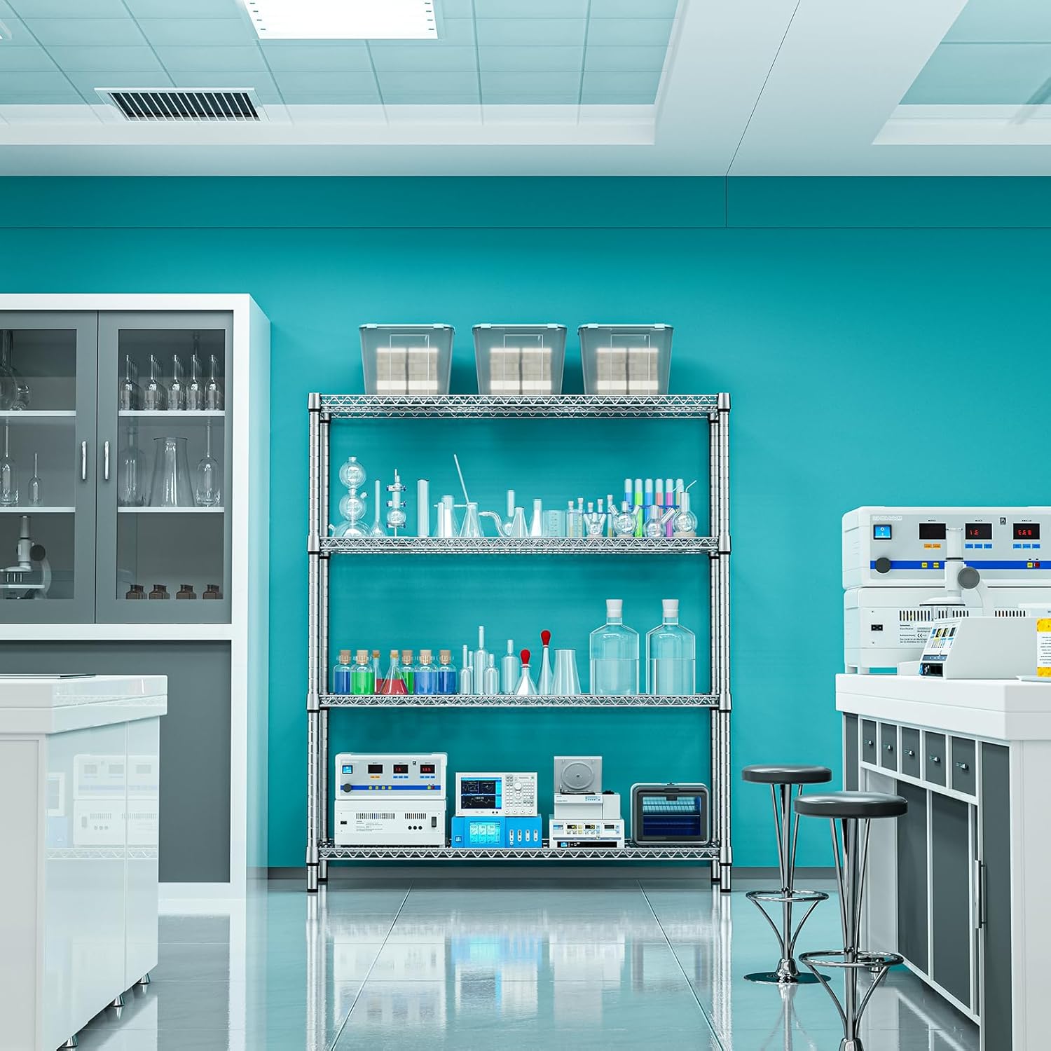 1760 LBs 4 Tier Storage Rack Metal Wire Shelving Unit, Storage Standing Shelf Organizer for Laundry Bathroom Kitchen Pantry Garage Utility Room, Chrome 17.7" D x 59.1" W x 70.4" H