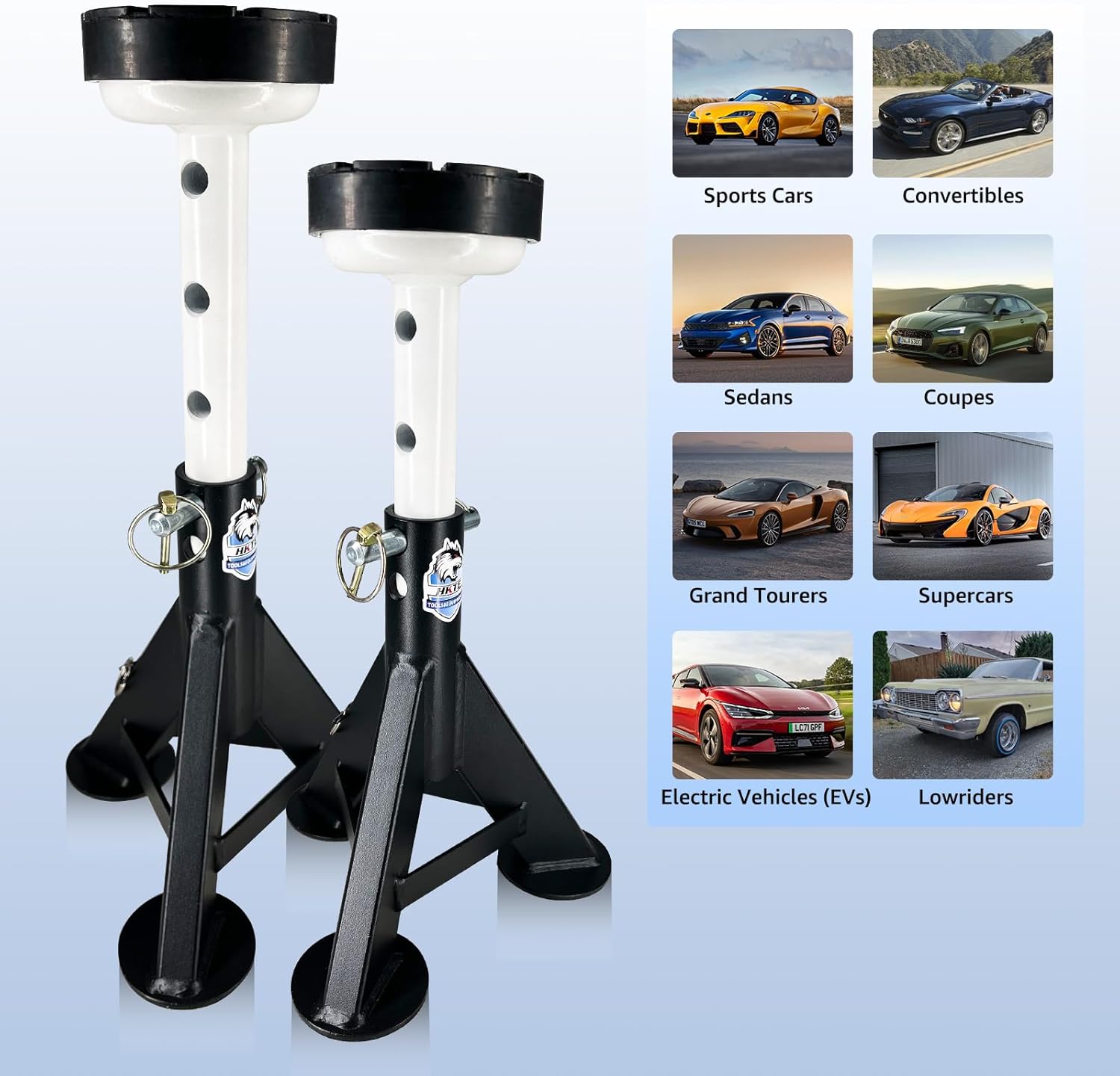 - Adjustable Height: With 7 height settings, these jack stands offer precision for various automotive tasks, providing reliable support.