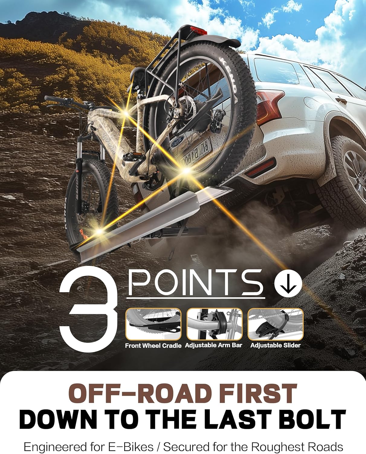 - DURABLE & SAFE: Young Electric bike rack is constructed with reinforced steel and aluminum which makes it durable and powerful enough to carry 1 bikes weighing 100 lbs. Comes with 1-arm fix, patent secure wheel cradles and anti-wobble structure, that secure your E-bikes in place without swaying and knocking against vehicle.
