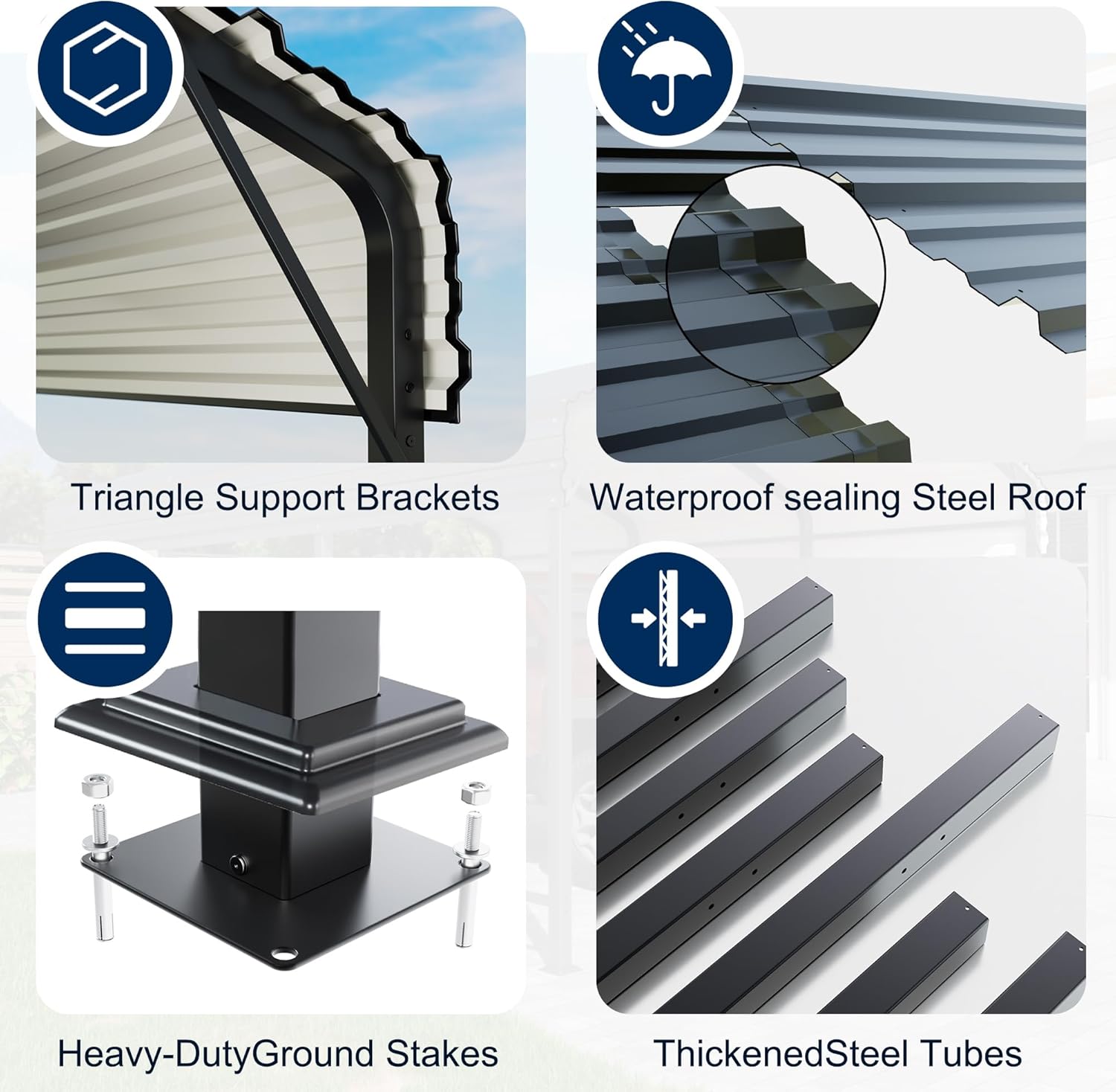 - [Security Commitment] Improvements to the carport include waterproof sealant strips along the roof and gentle, long-lasting rubber edges to minimize the risk of injury, underscoring the importance we place on your safety and the durability of the carport.