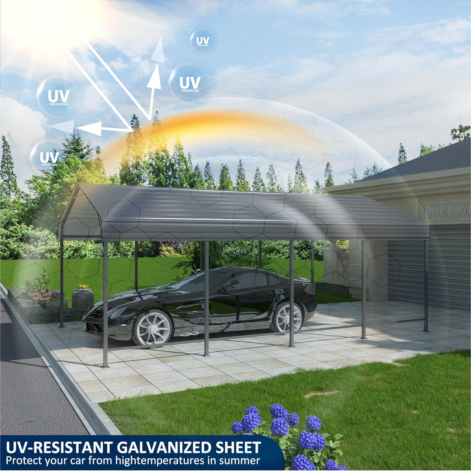 - [Multipurpose Protection] It can easily transform into an inviting space for outdoor activities or secure storage, seamlessly integrating into any exterior decor. Whether you need a shelter for your vehicles or a functional space for your hobbies, this carport has got you covered.
