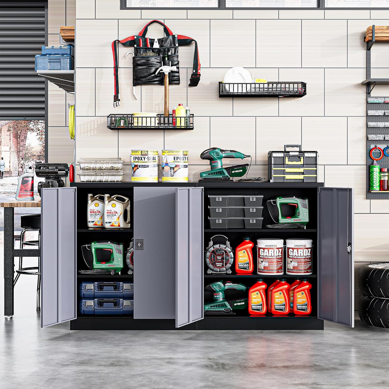 - 【Multi-Uses】This metal storage cabinet with doors and shelves can be used in the home, office, garage, workshop, school, or anywhere you need additional storage.