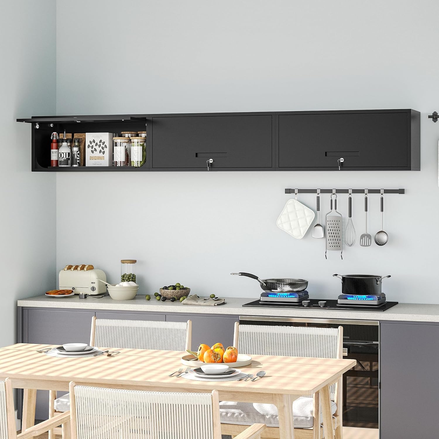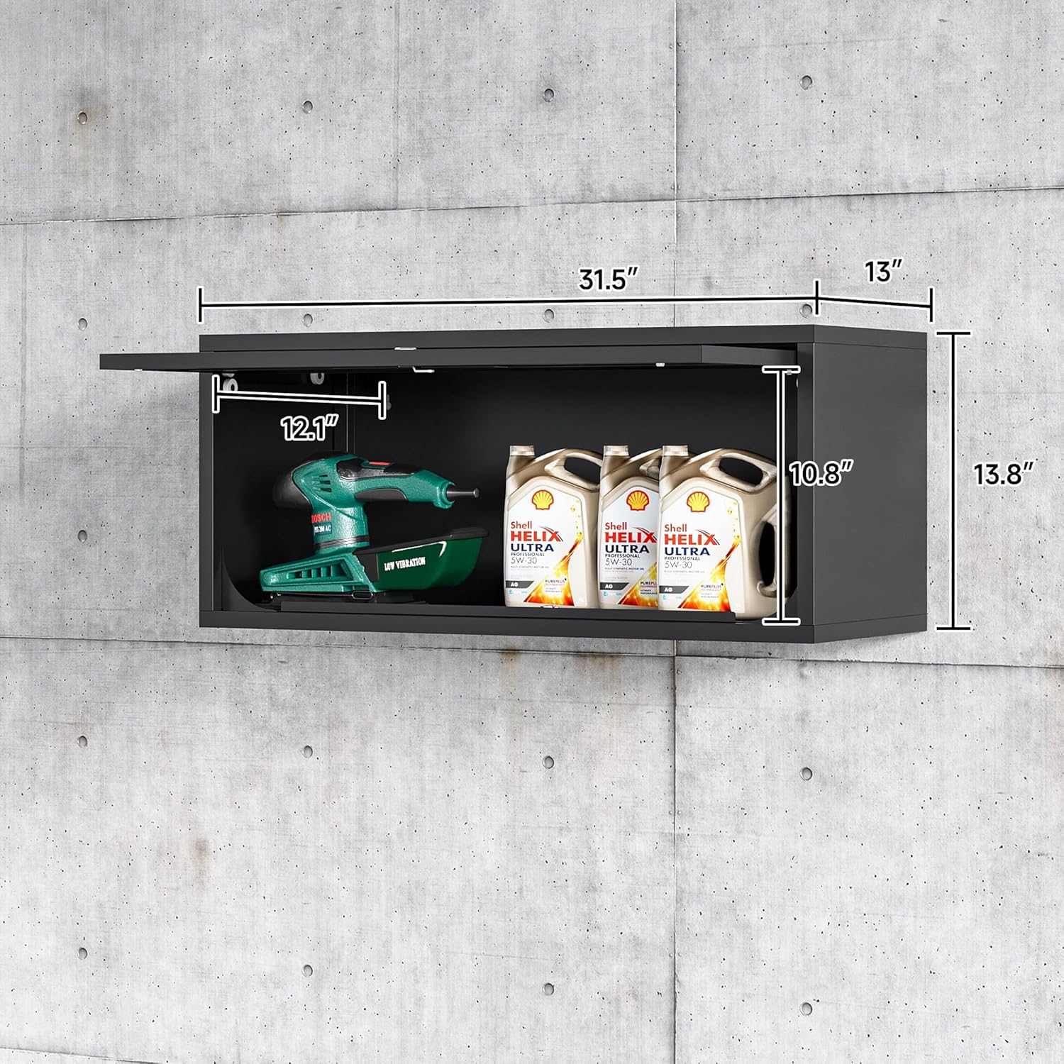 Metal Wall Storage Cabinet with Up-flip Door, Wall-Mounted Storage Cabinet for Garage, Warehouse, Home, Office, Assembly Required (Black, One Cabinet)
